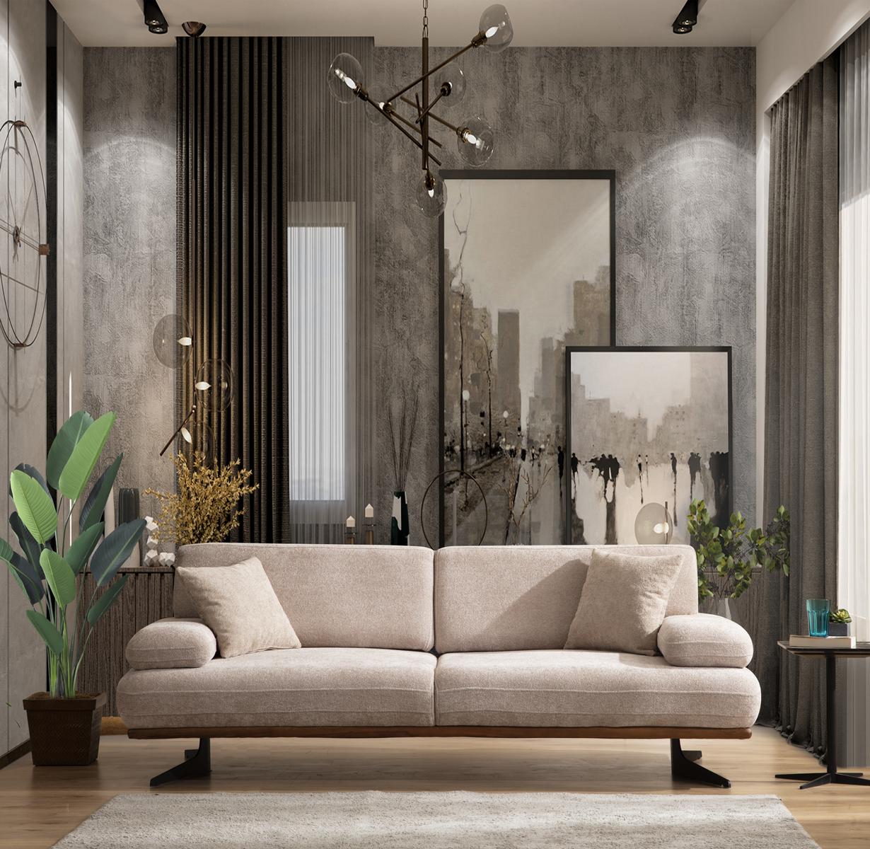 Den 'Sëtzegrupp Sofa Viersëtzer Modern Drésëtzer Canapé Wunnzëmmer Fauteuil Neit' ass de perfekte Mëttelpunkt fir Äert Wunnzëmmer. Dëse luxuriéise Set besteet aus engem Viersëtz-Sofa mat de Moossen ca. 260 x 105 x 95 cm, engem Drésëtz-Sofa mat Moossen vun ca. 240 x 105 x 85 cm, an engem elegante Fauteuil vun ca. 70 x 85 x 90 cm. All Stéck ass mat engem raffinéierten Textil iwwerdeckt an op engem robusten Holzrahmen montéiert, wat fir laang dauerhaft Qualitéit steet. D'Sëtzhéicht vu ca. 42 cm an d'Sëtzdéift vun ca. 52 cm (bezéiungsweis 50 cm fir de Fauteuil) suergen fir optimal Komfort, ideal fir Entspanung no engem laangen Dag. D'Faarf vum Sëtzegrupp ass wéi ofgebilt, awer aner Faarwen sinn op Ufro disponibel, wat déi individuell Personaliséierung erméiglecht.