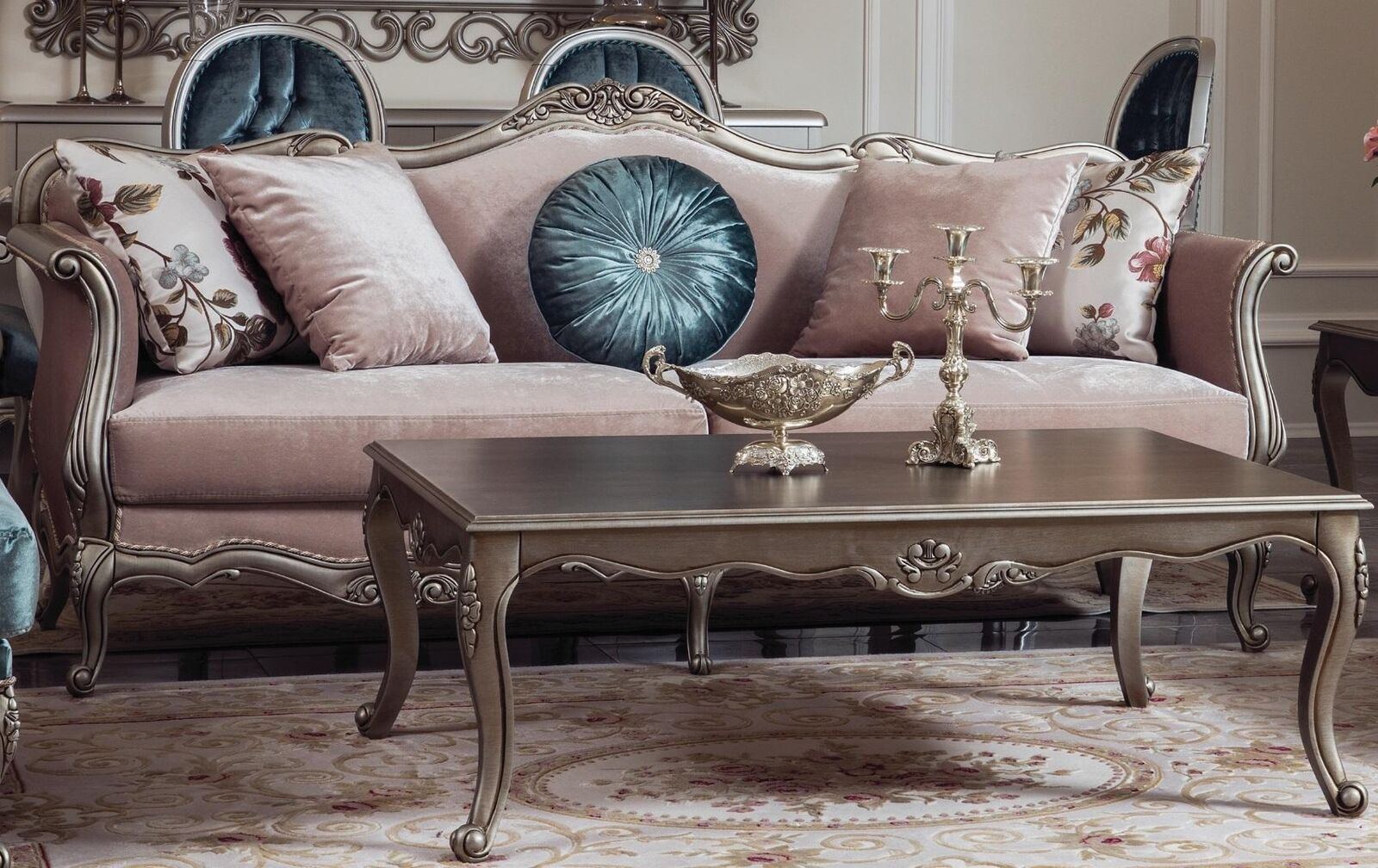 Sofa Garnitur Sofa Luxus Sofas Fauteuil 3+1+1 Sëtzer Dësch Set 4 Stéck