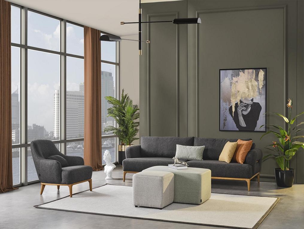Sofa, Wunnzëmmermibbelen, modernen Stil, Miwwelset, Fauteuil, Hocker