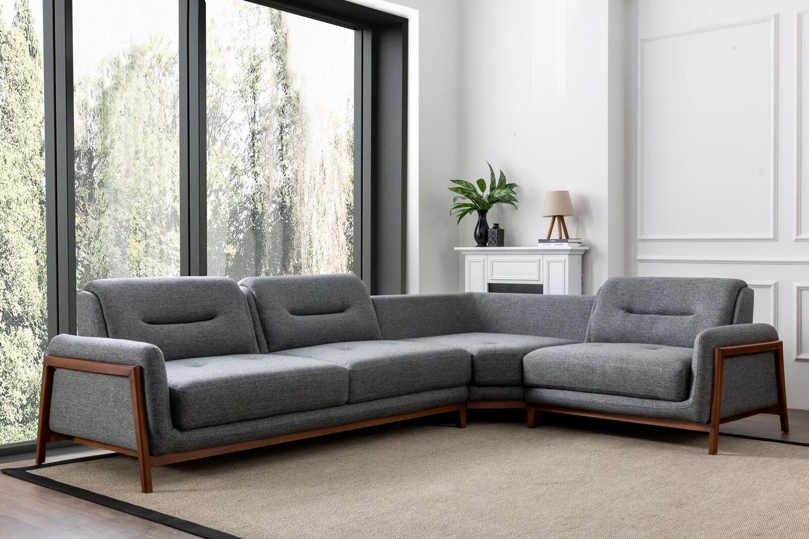 Wunnzëmmer Set Ecke Sofa L-Form Couch Gro Polster 3 +1 Sëtz Textil