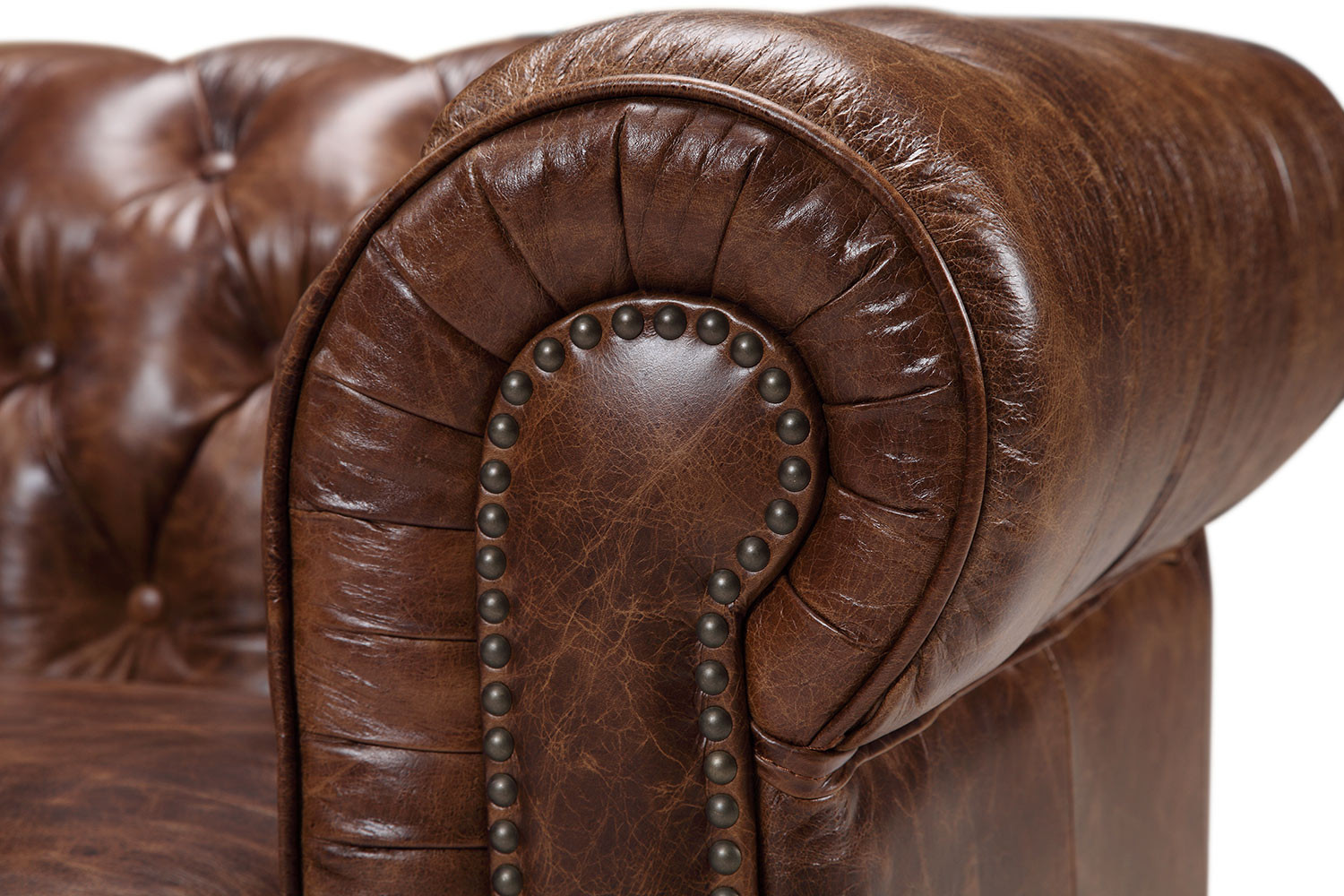 Den Chesterfield 100% Echt Lieder Ledersofa ass en exklusiivt Möbelstéck, dat Eleganz an Komfort op eng eenzegaarteg Manéier verbënnt. Mat hirem klasseschen Design a feiner Veraarbechtung aus 100% italiäneschem Rëndfleder, ass dës Sofa eng optimal Wiel fir déi, déi sech no héichwäerteger Astellung an hirem Liewensraum freeën. D'Sofa ass a verschiddene Gréissten disponibel, vun engem eenzelen bis zu engem fënnef-Sëtzer, fir all Raum an all Bedierfnesser gerecht ze ginn. D'Materialwahl, ob Konschtleder, Vollläder oder Samt, ass deen Detail, deen dëst Stéck op Äre perséinleche Stil ofstelle léisst, ouni zousätzlech Käschten. Déi italienesch Rëndlieder mat enger Dickt vun bis zu 2,50mm suergen net nëmme fir en onvergläichleche Komfort, mä och fir eng laang Liewensdauer.