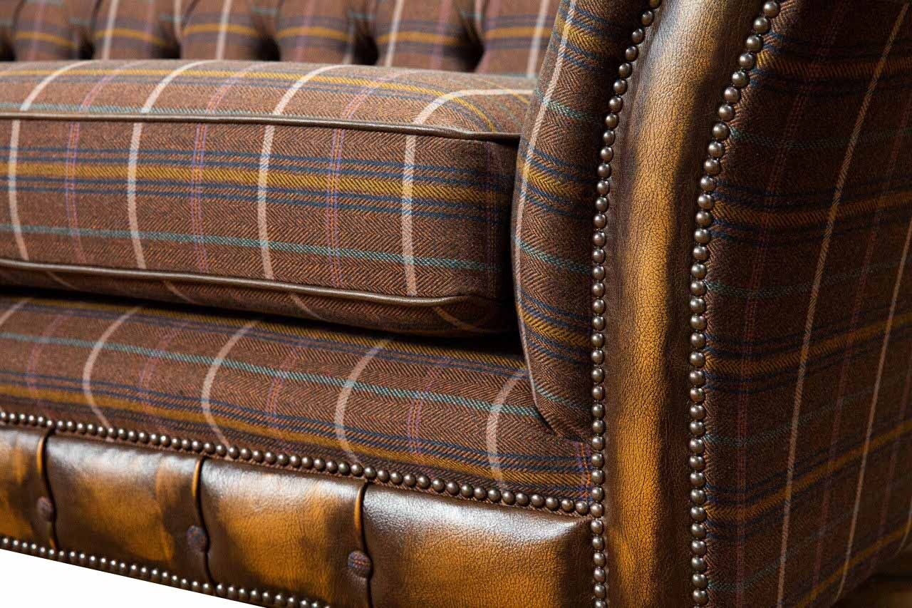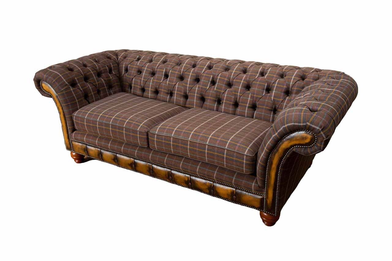 Chesterfield 3-Sëtzer Couch Polster Textil Couchen Wunnzëmmer Sofa Neien
