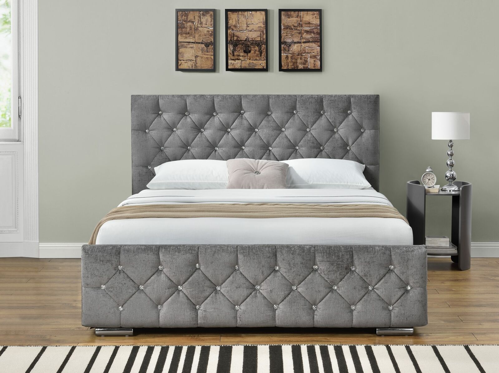 Mat véier verschiddene Gruppematerialien, inklusiv Premium Konschtlieder, Echtlieder aus Italien, Samt Stoff oder dem innovativen Magic Home Stoff, ass Komfort a Qualitéit garantéiert. Déi Option fir Kristallstengen oder Echte Swarovski Kristallsteine als akzentuéierend Detailer ze wielen, mécht dat Bett zu engem richtegen eye-catcher. Mat enger innere Struktur aus echt Holz an engem Federkär Ënnerfiederung ass dëst Bett net nëmme robust mee bitt och en héijen Niveau un Ënnerstëtzung a Komfort, ideal fir e rouegen Nuetschlof. Perfekt fir déi, déi Eleganz an hiren alldeeglechen Raum bréngen wëllen.