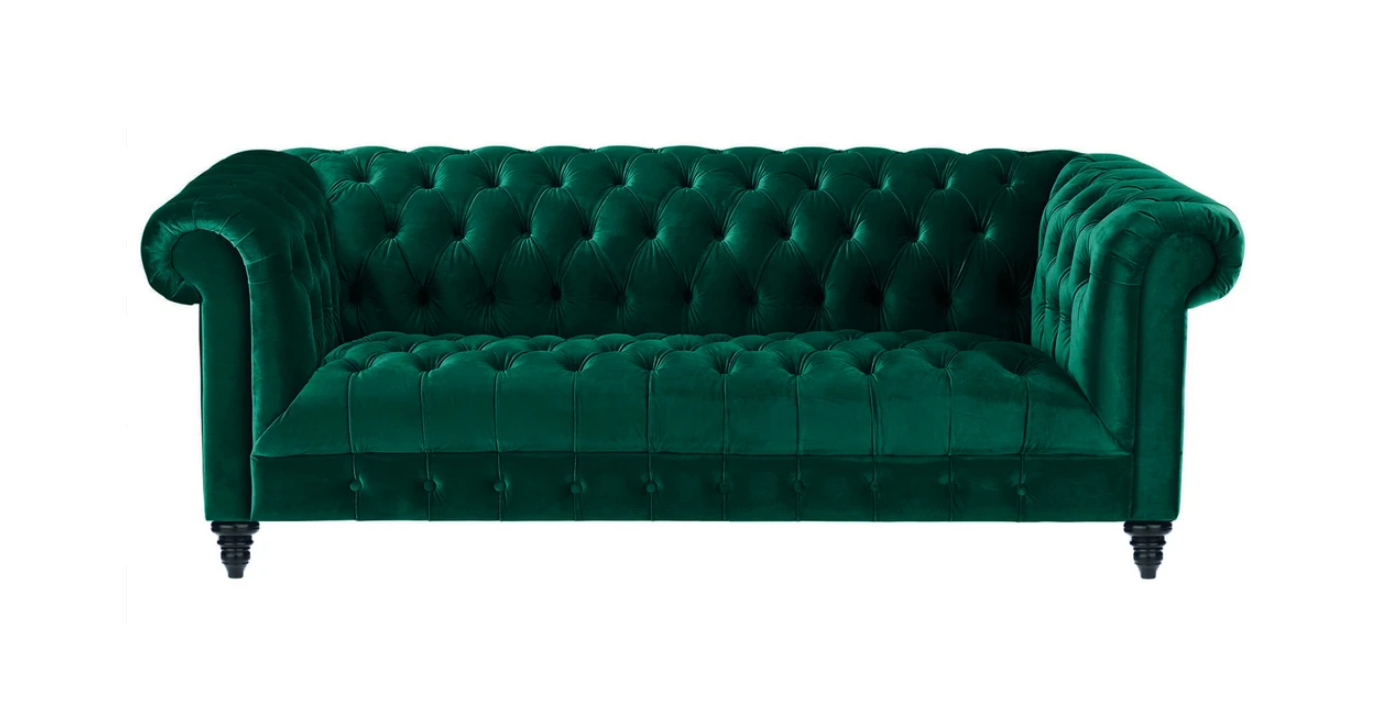 Chesterfield Tierkisblo Couch Luxus Polster Miwwel Sofa mat Knäpp Dreisëtzer Samt