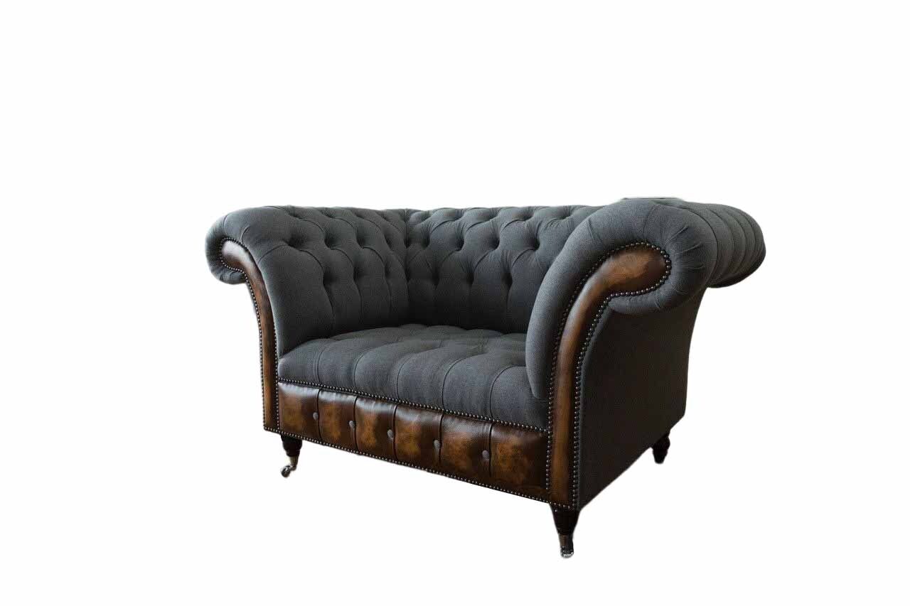 Design Chesterfield Stoff Couch Fauteuil 1.5 Sëtzer Polster Sofas Lounge