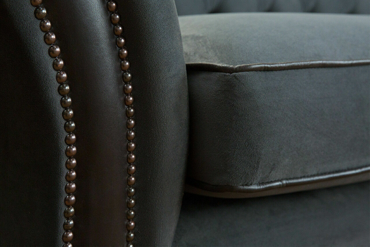 Klassesch Chesterfield Couch 4 Sëtzer Sofa Couch Samt Lieder Design Schwaarz Nei