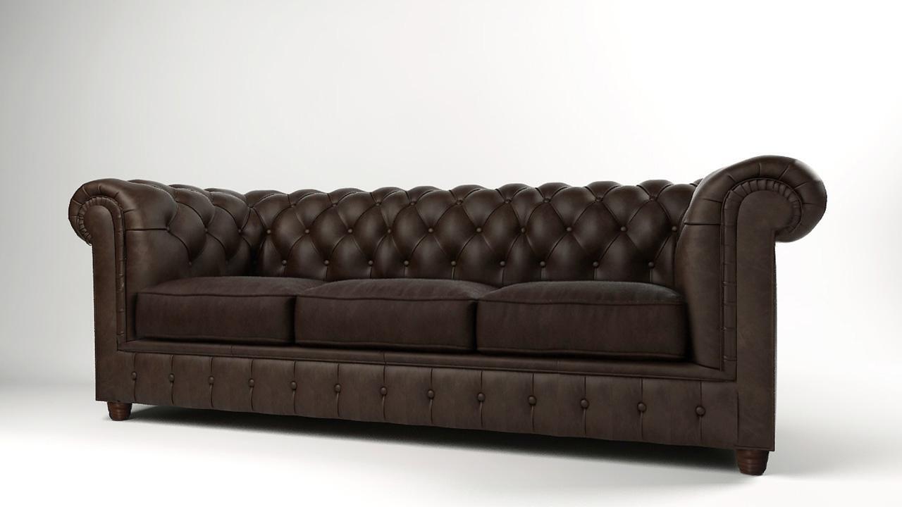 Chesterfield Canapé, 3-Sëtzer Canapéen, Wunnzëmmertmëbel