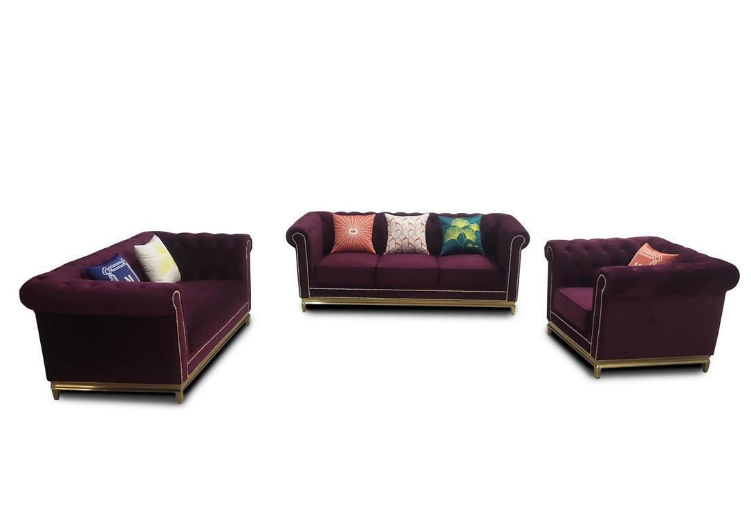 Entdeckt de raffinéiert an zäitlosen Design vum Chesterfield Wunnzëmmer Canapé Sofa Set Luxus Garnitur 3+2+1 Grupp Neit. Dës exklusiv Sofa-Garnitur, déi déi elegant Chesterfield Ästhetik mat moderner Luxuriéiskeet vereent, besteet aus engem dräi-Sëtz, engem zwee-Sëtz, an engem een-Sëtz. Mat Dimensioune vun 215 cm Längt fir de 3-Sëtzer, 170 cm fir de 2-Sëtzer an 110 cm fir de 1-Sëtzer, bedeit dës Garnitur en optimalen Komfort an Funktionalitéit an Ärem Wunnzëmmer. D'Sëtzhéicht vun 46 cm an d'Sëtzdéift vun 58 cm suergen fir eng bequem Positioun bei längerem Sëtzen. Dir kënnt d'Faarf no Äre Virléiften auswielen, well eng fräi Faarfwahl ënnert dem Reiter "Faarwen" verfügbar ass. De qualitativ héichwäertege Materialmix huet en Premium Liederfaserstoff (70% Lieder / 30% Polyester) als Standardoptioun.