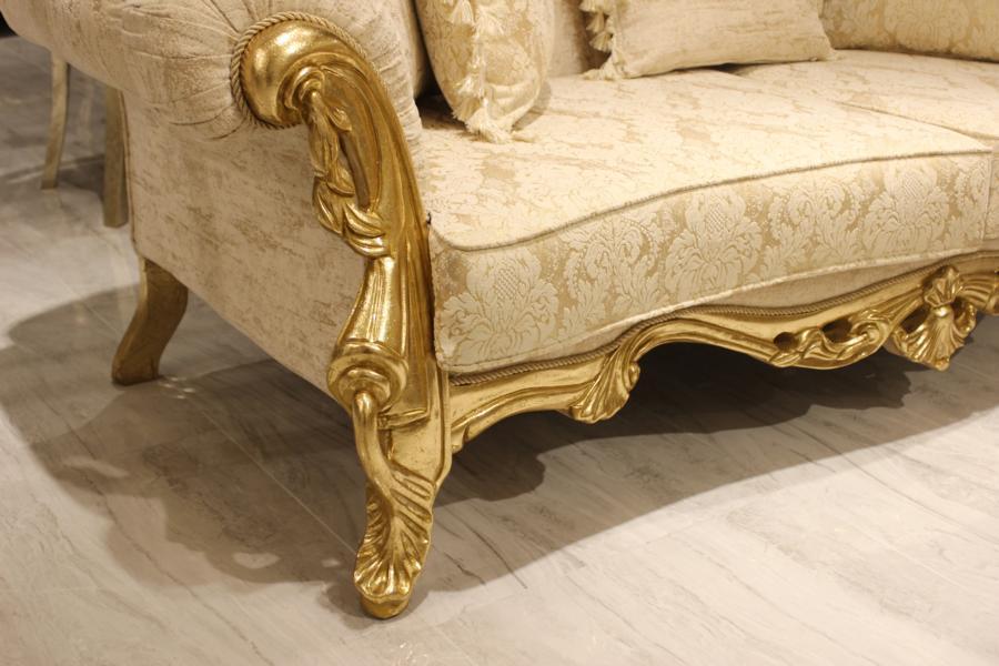 Klassesch Sofagarnitur 311 Sëtzer Couchgarnitur Holz Fauteuil Textil Komplett Nei