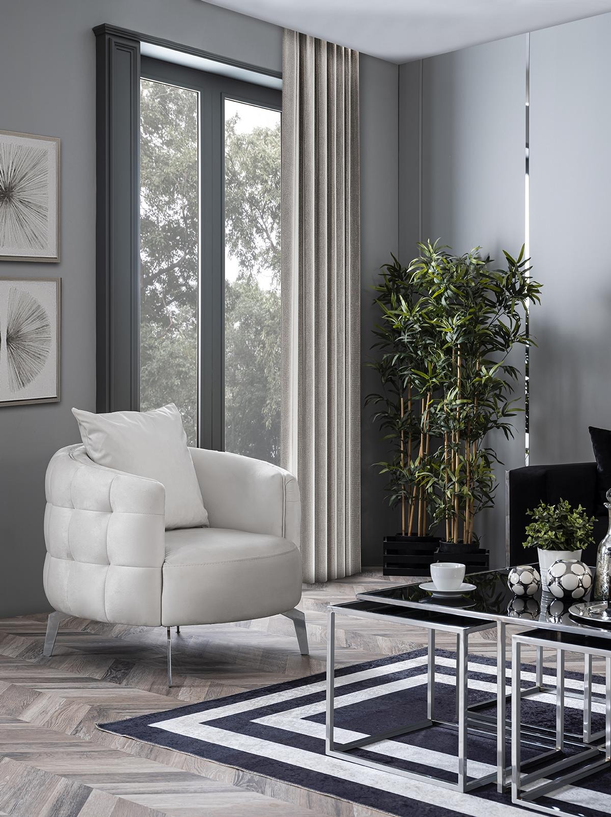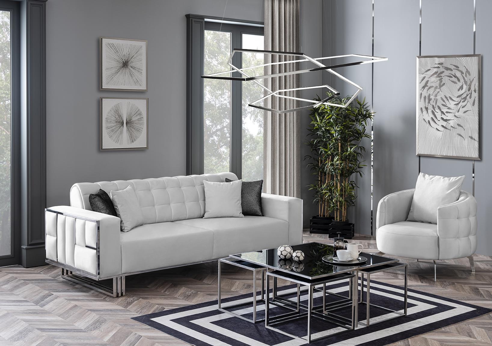Dës Sofagarnitur ass ideal fir béid kleng an grouss Raim, mat Dimensiounen vun 235 x 100 x 87 cm fir den dräisëtzege Sofa, 180 x 100 x 87 cm fir den zweesëtzege Sofa, an 93 x 95 x 80 cm fir de Sëtz. Säin neutralen Design a Faarwen maachen et einfach an all Interieur ze integréieren. Et ass perfekt fir gemittlech Fernsehsouenden, Treff mat Frënn oder einfach fir ze relaxen. Dës Garnitur vereent Funktioun, Komfort a Stil, a mécht all Wunnzëmmer méi agréabel a propper.