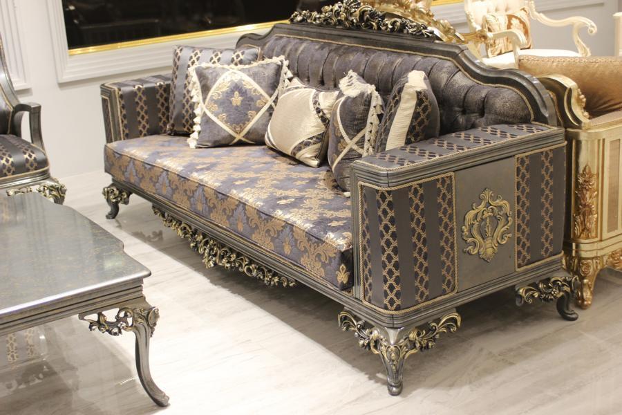 D'**Luxuriéis 3 Deeler Sofagarnitur Set** besteet aus engem **imposanten 3-Sëtz Sofa** an zwee **komfortabelen Sessel**, déi eng perfekt Kombinatioun vun Eleganz a Komfort bidden. Mat hire insgesamt Dimensiounen vun ongeféier **240 x 66 x 125 cm** fir de Sofa, an **70 x 64 x 111 cm** pro Sessel, ass dës Garnitur ideal fir grouss Wunnzëmmeren. D'Struktur ass aus **Holz**, iwwerzunn mat engem delikate **Textilstoff**, wat fir béid Haltbarkeet an Eleganz suergt. Faarwen ginn **wéi ofgebilt** geliwwert, awer dir kënnt och **op Ufro** aner Optiounen erauswielen. Dës Garnitur ass perfekt fir déi, déi e stilvollen, awer komfortabele Look sichen.