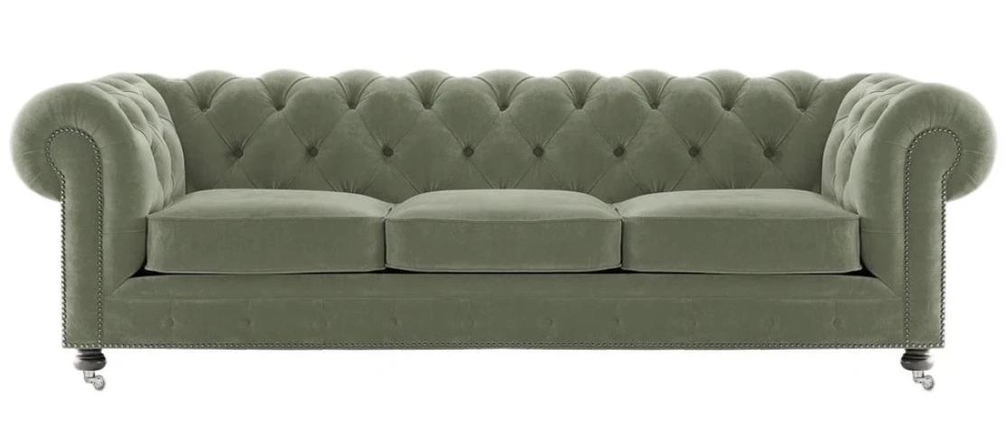 Luxus Giel Chesterfield Samt Dreisëtzer Polsterméiwer Hotel Wunnzëmmer Praxis