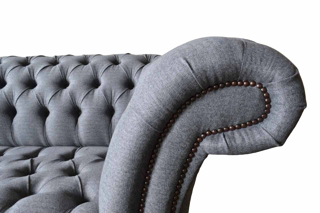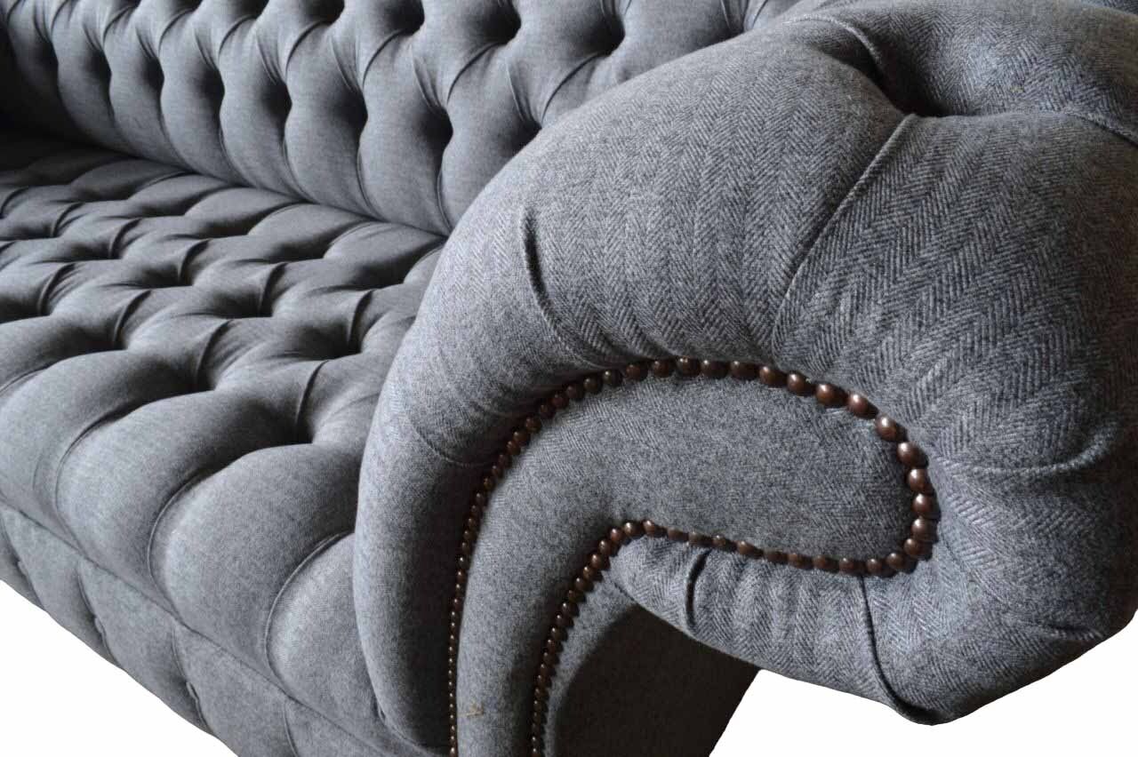 Chesterfield 3 Sëtzer Canapé Gepolsterten Sëtz Textil Stoff Couchen Sofa Nei