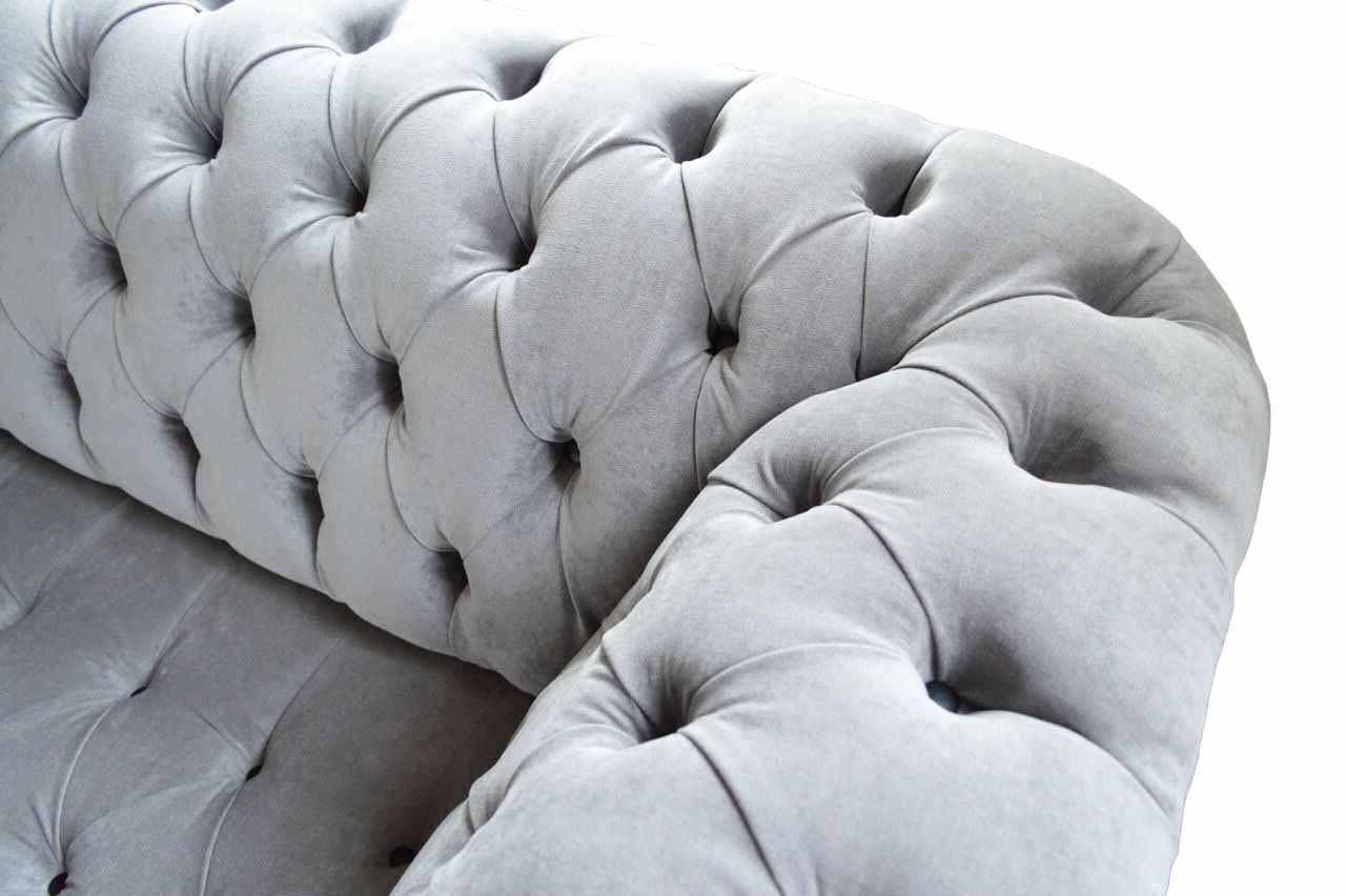 Entdeckt de komfortabele Luxus vun eiser Chesterfield 3 Sëtzer Couch, déi eng harmonesch Kombinatioun vu Stil a Funktionalitéit bitt. Mat enger Dimensioun vun ca. 230 x 80 x 90 cm ass dës Couch déi ideal Wiel fir all Wunnzëmmer, déi eng elegant Atmosphär schafen wëllen. De Sëtztextilstoff bitt e bëssen Noblesse mat enger Velours Optik, wärend d'staark bannescht Holzstruktur fir eng laang Liewensdauer garantéiert. Dir kënnt d'Faarf an d'Material no Äre perséinleche Virléiften wielen, mat Optiounen aus Premium Konschtlieder, Echtlieder an och mat Samt an Magic Home fleckenresistenter Stofferung, alles fir sécherzestellen, datt Är Couch net nëmme funktionell an awer och stilvoll ass.