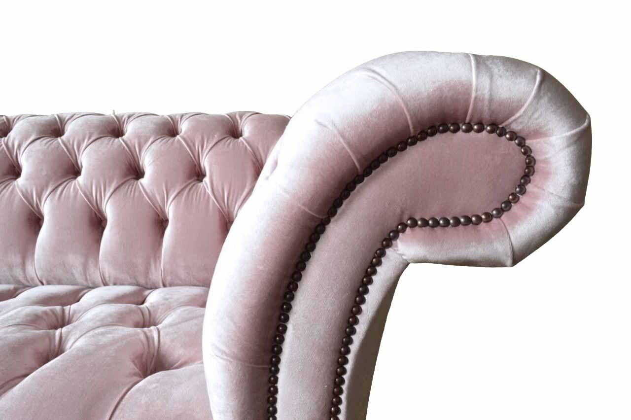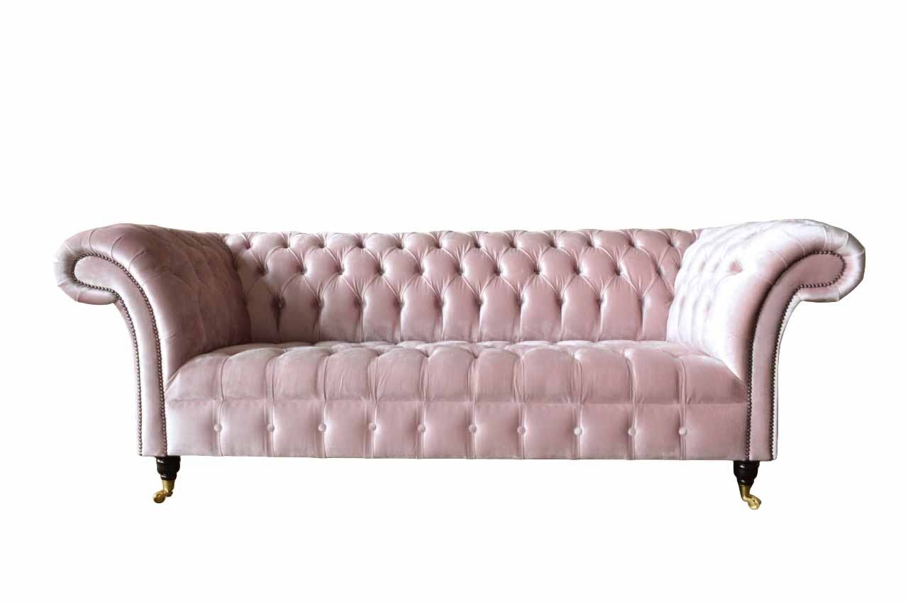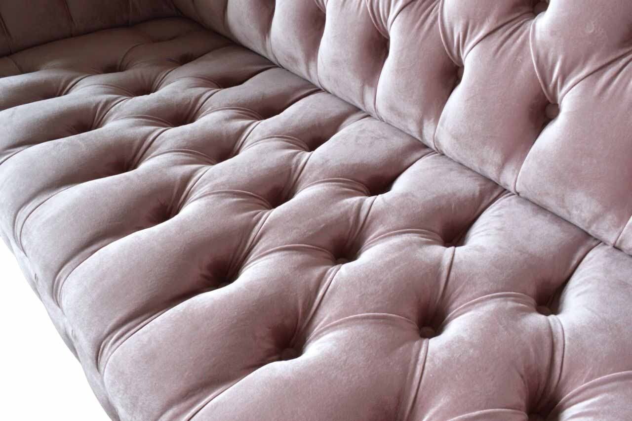 Chesterfield 3-Sëtz Sofa aus Stoff Rouse Stoffsofa Fousstäsch Living-Raum nei.