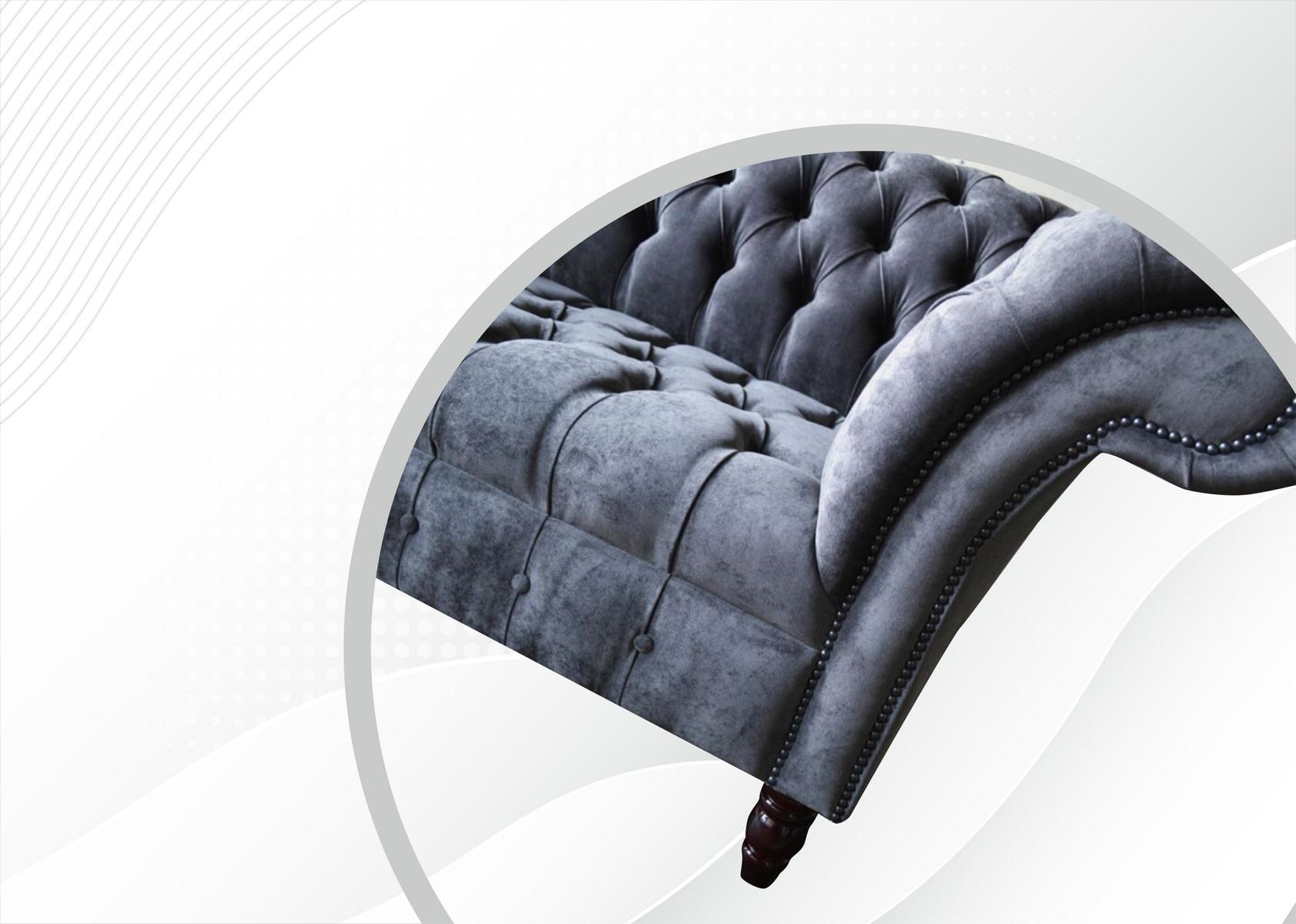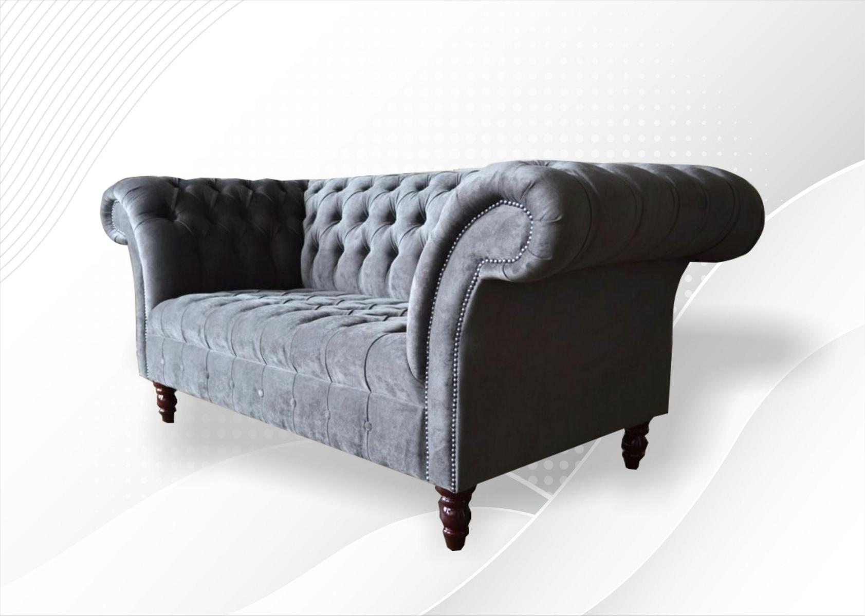 Den 'Chesterfield 3-Sëtz Stuff Canapé Sofa Polster Sëtz Textil Garnissur Gro' ass e luxuriööse Mëbelstéck, dat duerch seng Eleganz an Komfort iwwerzeegt. Mat enger Gréisst vun ongeféier 225cm x 98cm x 79cm, bitt et genuch Platz fir e gemittlecht Sëtz-Erfarung. De Sëtz huet eng Héicht vun ongeféier 44cm an eng Déift vun 58cm, déi en optiméiert Ergonomie förderen. Dësen Modell bitt eng fräi Faarfwahl a kann a verschiddenen Materialgruppe bestallt ginn, dorënner Premium Kënschtleeder, Premium Samt Stoff a fleckenofweisende Stoff. Fir déi, déi no engem extra Touch vun Luxus sichen, sinn Optionale Materialien wéi italienesch Rindsleder a Swarovski Kristallsteng verfügbar. D'Innengestell ass aus echt Holz gemaach, wat déi néideg Stabilitéit a Liewensdauer garantéiert.