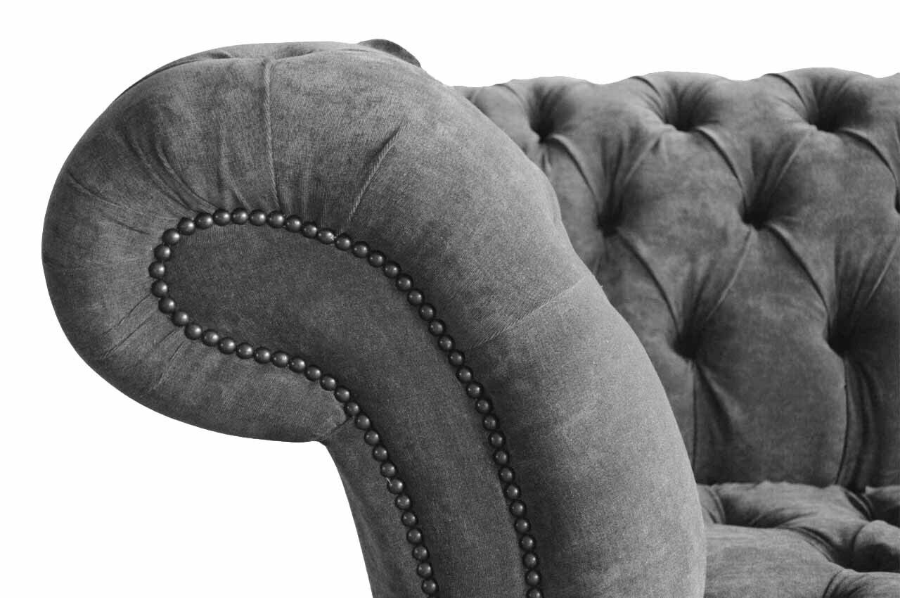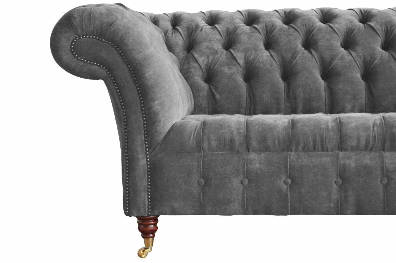 De 'Chesterfield 3-Sëtzer Canapé Polstersëtz Textilstoff Gro Couchen Sofa' bitt en éischteklassigen Komfort gepaart mat engem elegante Design. Mat sengem Moossen vun ca. 230 cm an der Längt, 90 cm an der Héicht, an 80 cm an der Breet, ass dëse Sofa ideal fir all Wunnzëmmer. Déi fräi Faarfwahl erlaabt Iech de Sofa perfekt un Ären Zëmmerdekor unzepassen. Aus héichwäertegem Textiliewen mat enger stabiler Holzstruktur gebaut, versprécht dëse Canapé laang dauerhaft Haltbarkeet. D'Innenstruktur aus echtem Holz an de Federkär suergen fir exzellent Ënnerstëtzung an Akomfortabel falzen, egal wéi laang Dir drop setzt oder lieft.