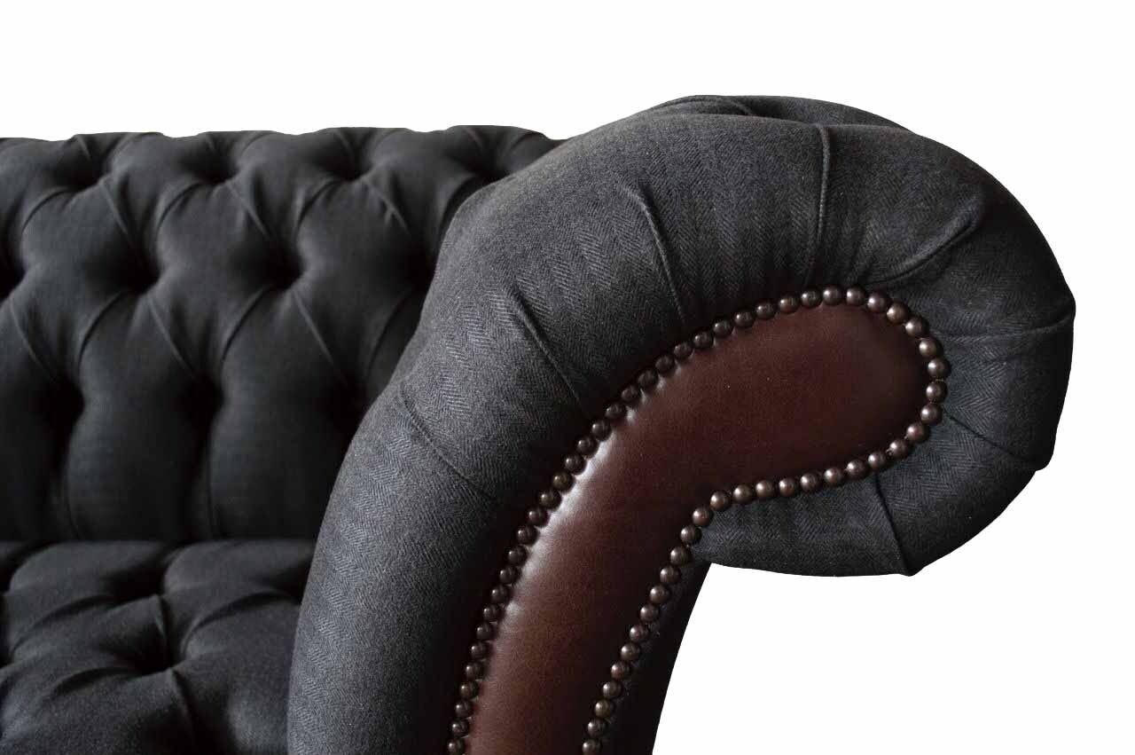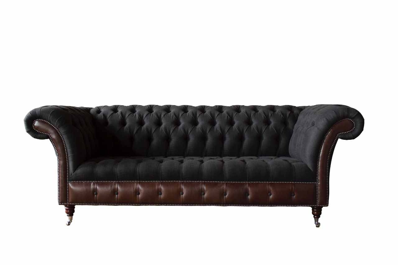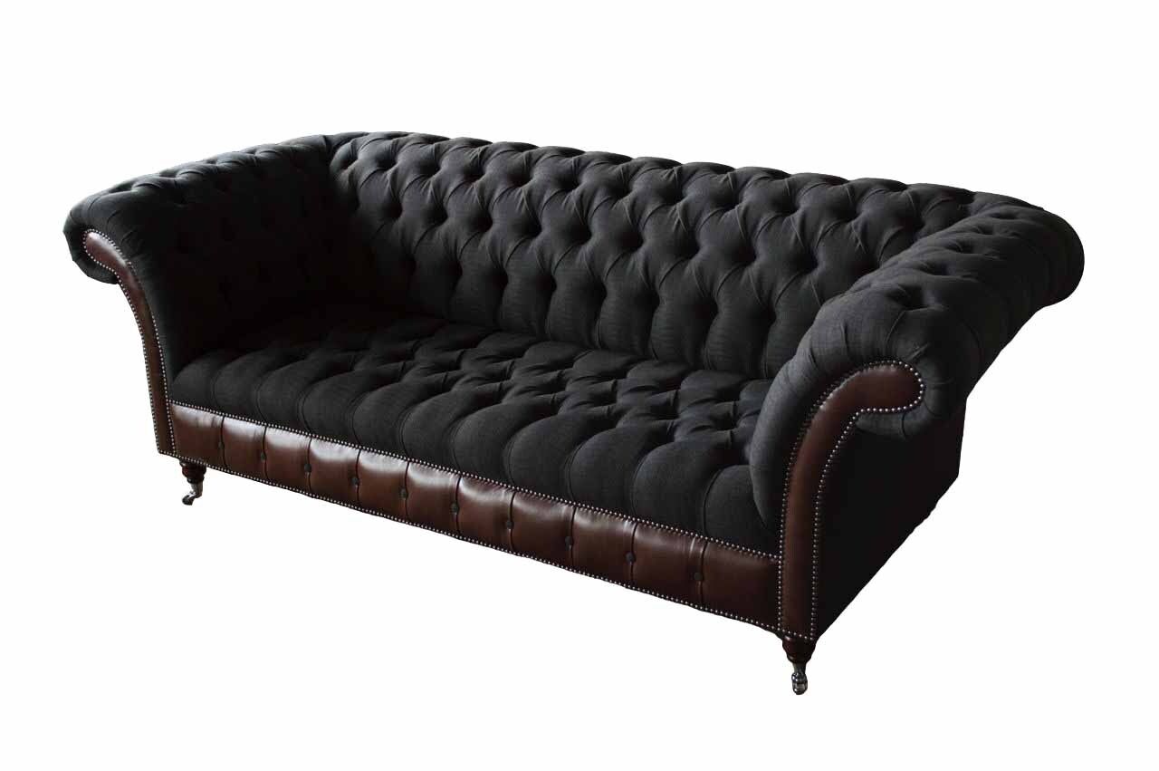 Chesterfield 3-Sëtz Sofa Canapé Lieder Polster Sëtz Stëff Schwaarz Nei