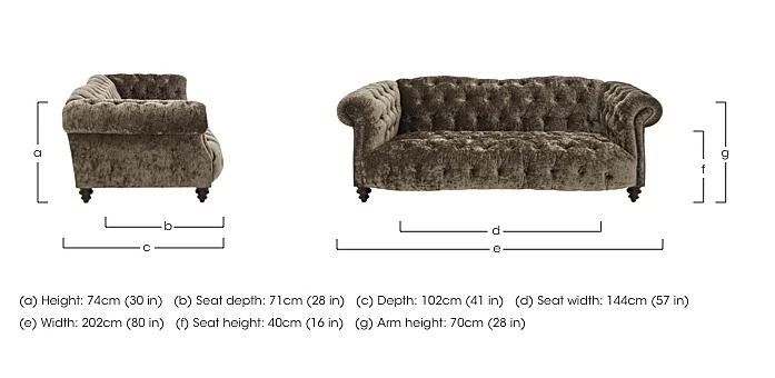 ca. 3-Sëtzer: 210 x 90 x 80 cm.