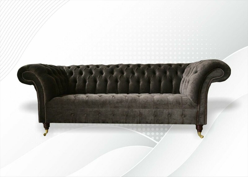 Den 'Chesterfield Original Miwwel 3 Sëtzer Canapé Polstersofas Couchen Textilsofa Nei' ass en aussergewéinlecht Stéck Miwwel, wat Komfort a Stil an Ären Heem bréngt. Mat enger Gréisst vun ca. 225cm x 98cm x 79cm an enger Sëtz Héicht vun ca. 44cm, bitt et genuch Plaz fir Iech an Är Gäscht. D'Sëtz Déift vu ca. 60cm suergt fir optimal Sëtzpositioun an Komfort. D'Sofa ass aus héichqualitativem Textil gemaach, mat der Méiglechkeet fir d'Faarf fräi ze wielen. Zousätzlech hutt Dir d'Optioun, aus verschiddene Materialgruppen ze wielen, dorënner Premium Kënschtleeder, Echtleder, Samt Stoff oder Magic Home fleckenofweisend Stoff, fir dat perfekt Stéck fir Är Wunnzëmmerambiance ze kreéieren.
