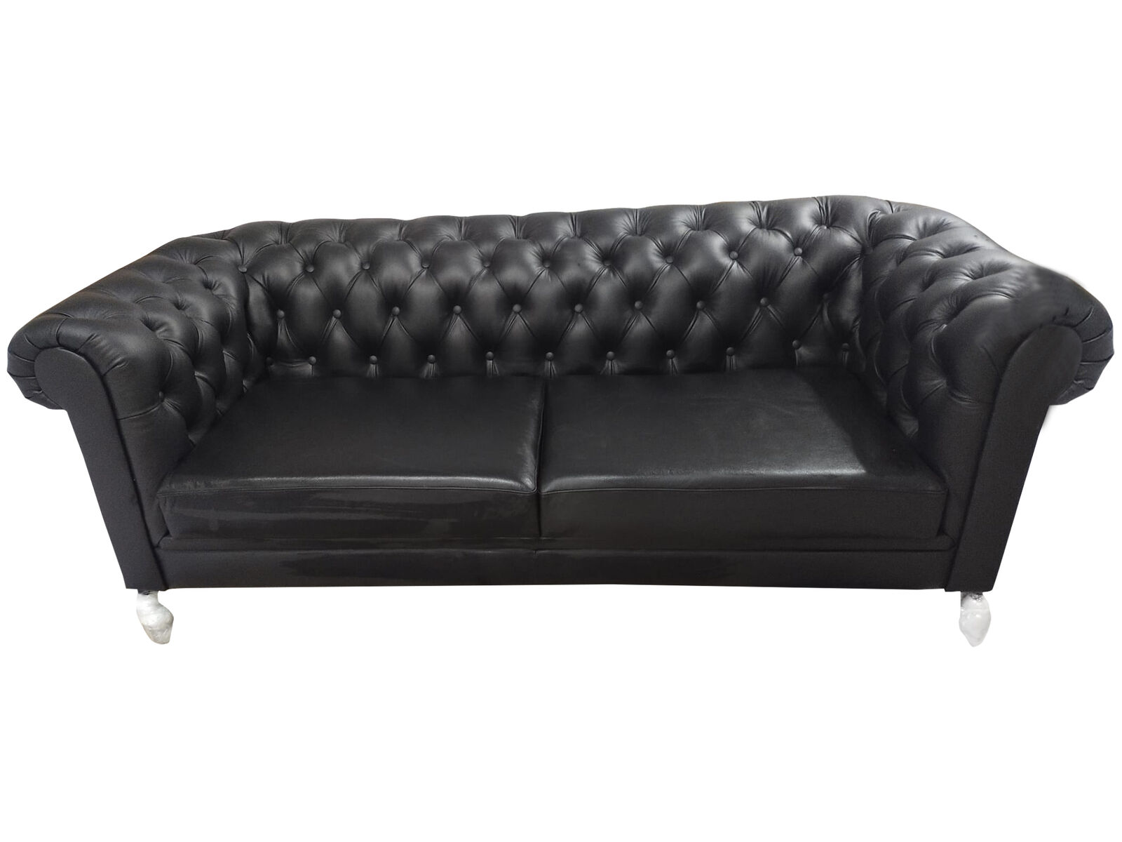 Chesterfield Sofa 3 Sëtzer Couch Ledersofa Couches Schwaarz Sofas