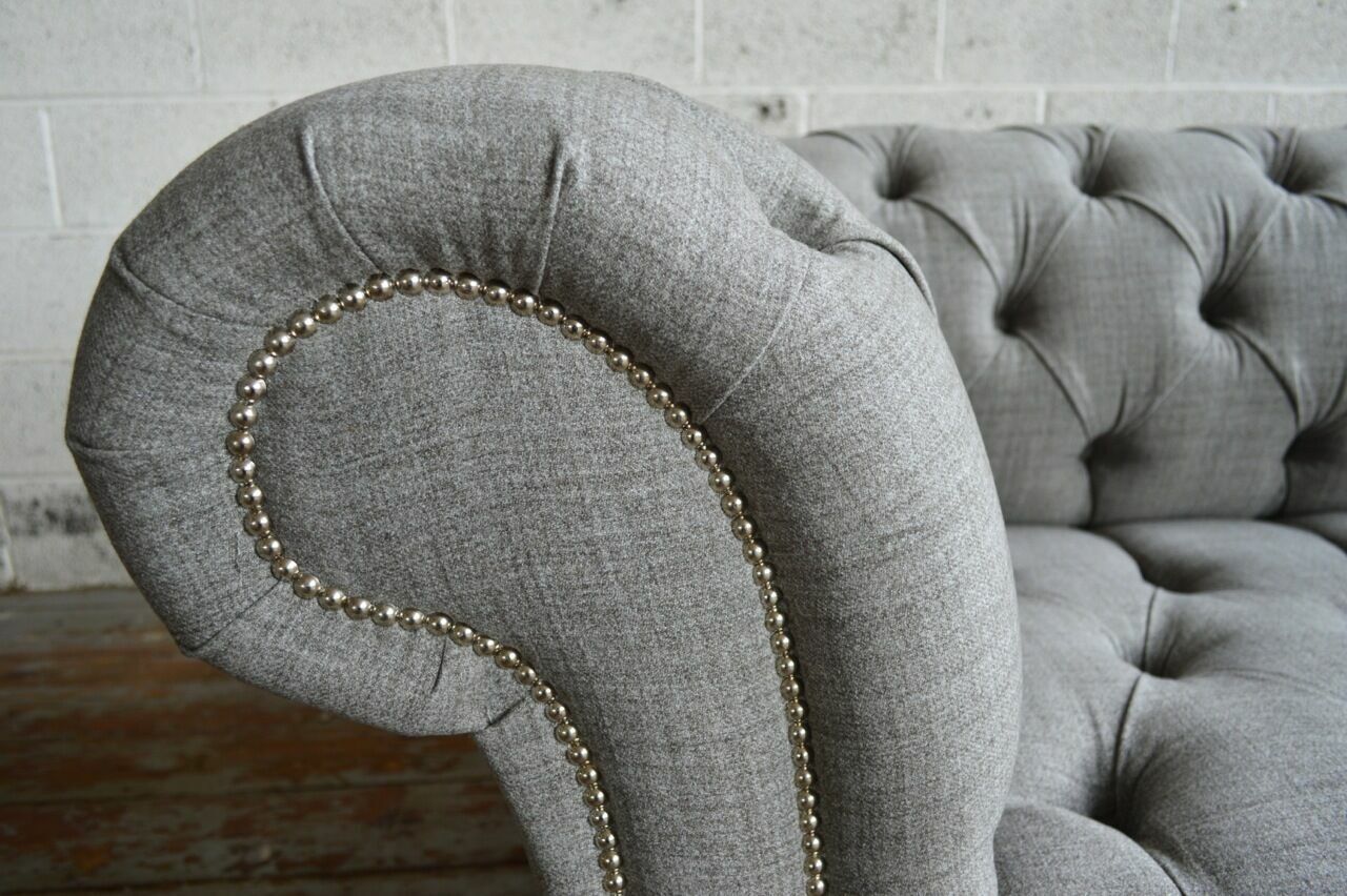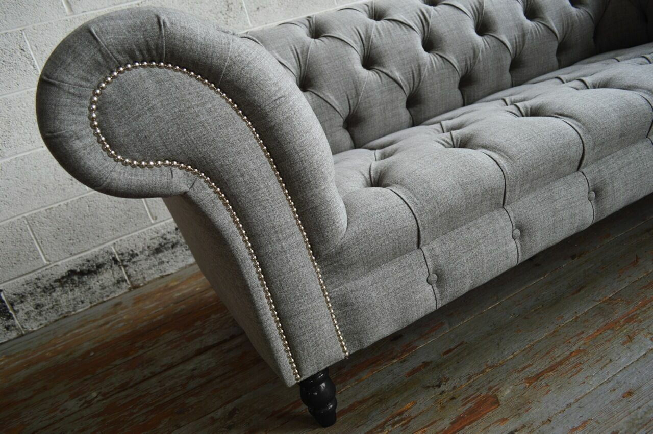 Erreechen Dir eng raffinéiert Eleganz an Ärem Wunnraum mat eisem 'Design Chesterfield Sofa 3 Couch Sofa Set Stoff Polster Lieder Dräi-Sëtz Couchë'. Dëst stilvollt Sofa ass 220 cm laang, 98 cm déif, an huet eng Héicht vun 79 cm, wat et zu engem geräimege Mëttelpunkt vun Ärem Heem mécht. D'Sëtzhéicht ass op enger komfortabeler 42 cm gesat fir garantéiert Gemittlechkeet. Dir kënnt de Faarfdesign vun Ärem Sofa selwer wielen, mat Optiounen aus Premium kënschtläder oder optional Vollleder fir en Zouschlag. Fir déi mat engem Flair fir de Besonneschen, kënnen extra Swarovski Kristalle bäigefléckt ginn, déi engem en luxuriéise Glanz ginn.