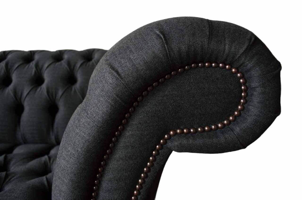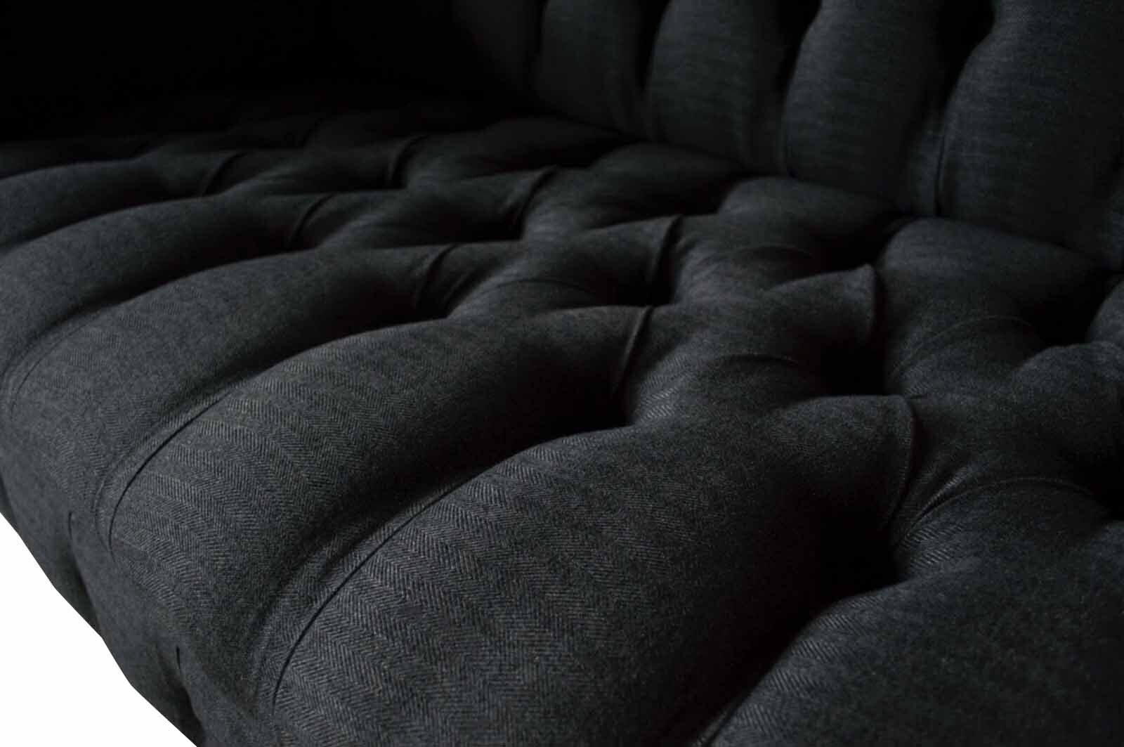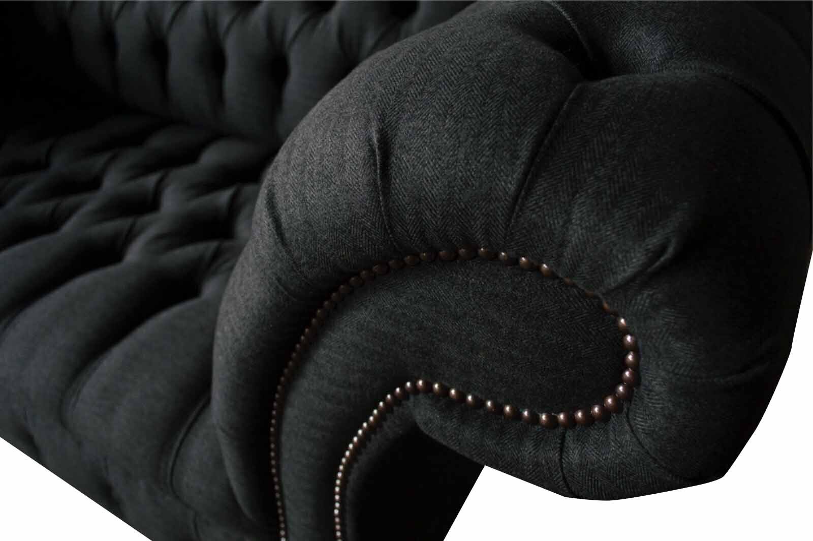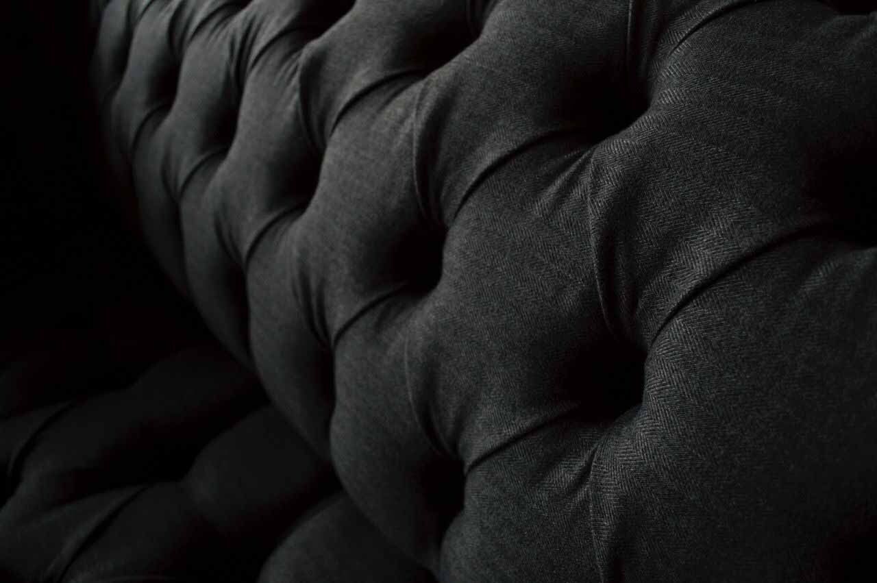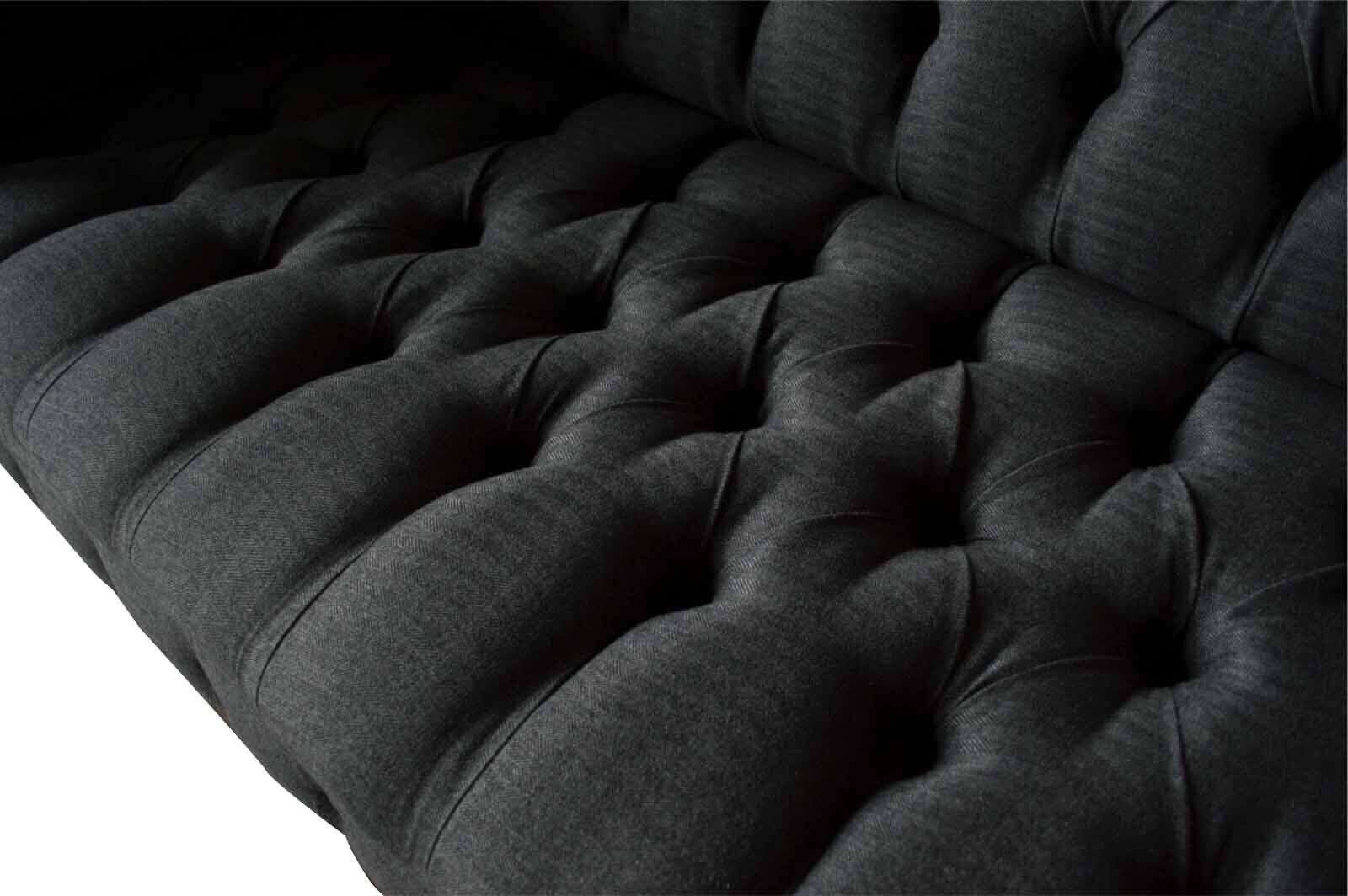 Design Chesterfield Stoff Couch Sofa 2 Sëtzer Këssen Textil Stoff Nei