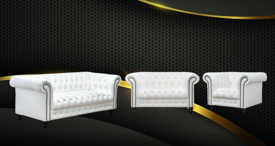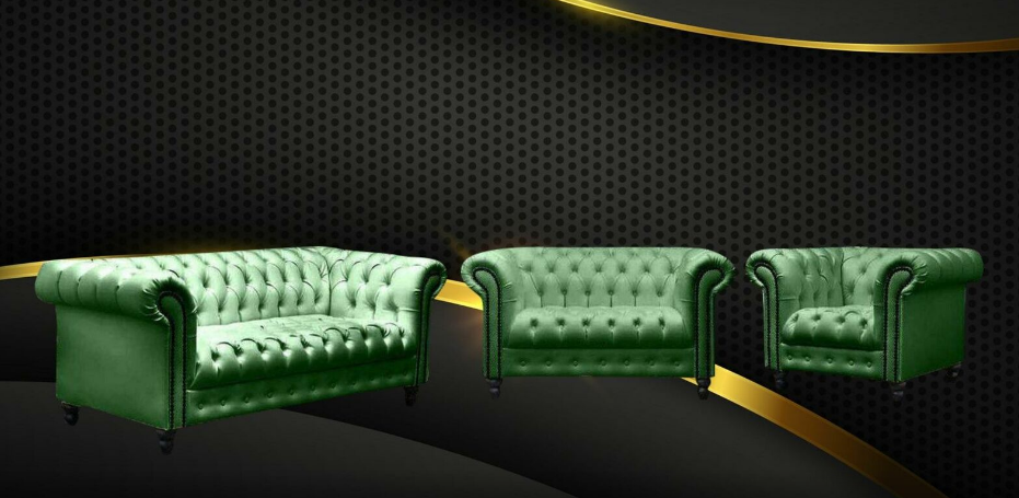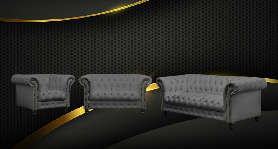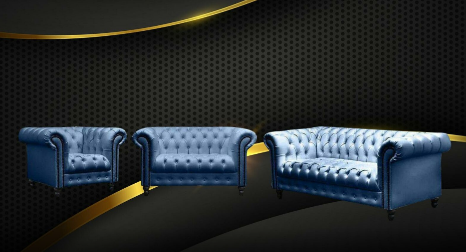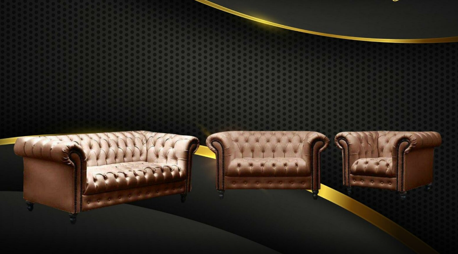 Dräisëtzer Chesterfield Canapé Couch Polster Luxus Miwwel Stoff Couchen
