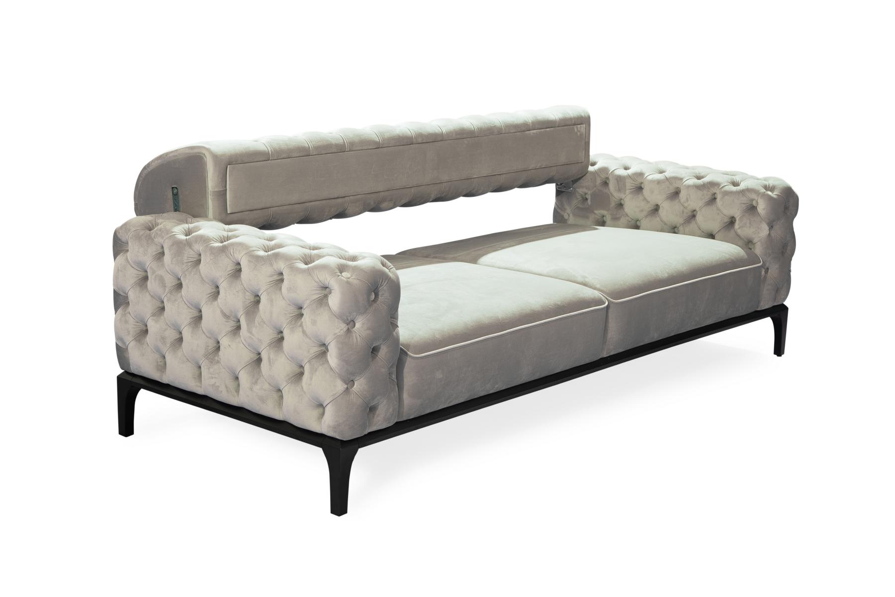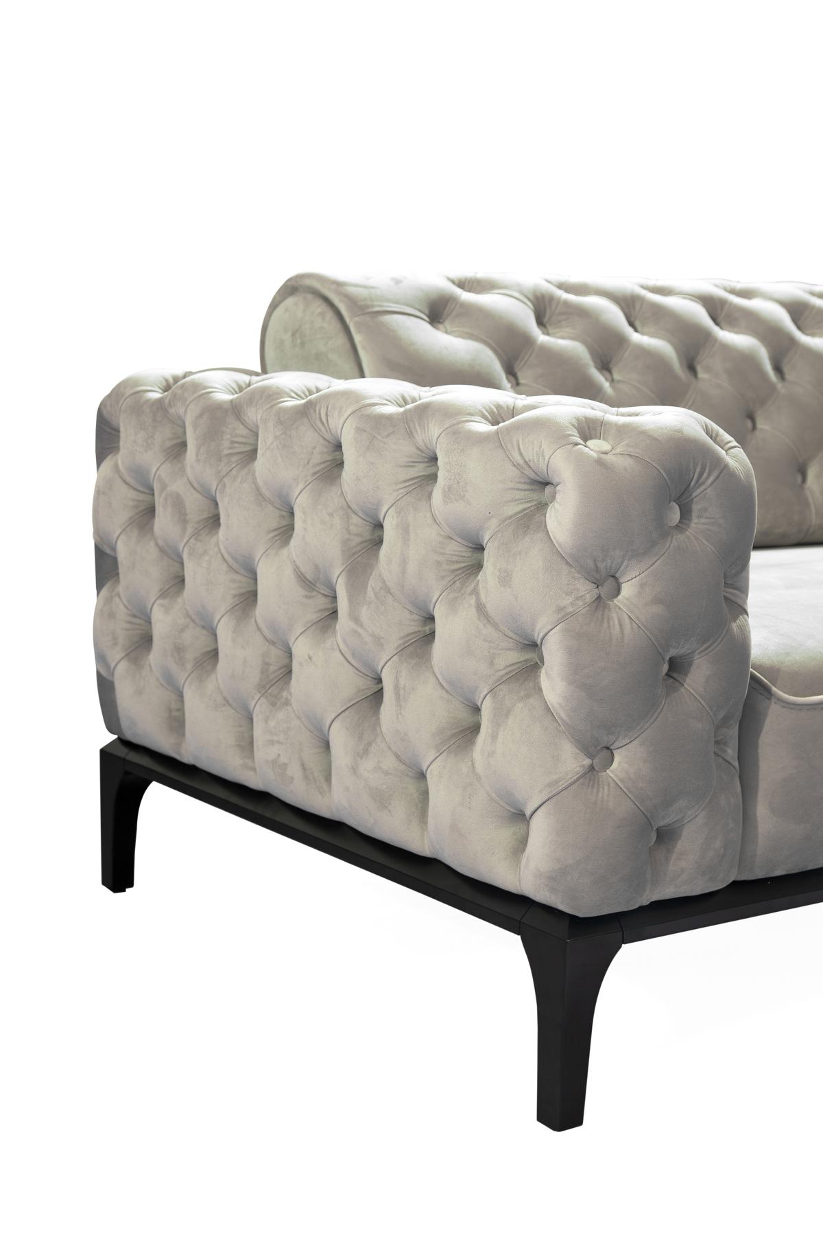 Dëst Sofa ass perfekt fir eng Vielfalt u Liewenssituatiounen, sief et en entspannten Owend mat der Famill oder e formellt Dinner mat Gäscht. Dank sengem zäitlose Chesterfield Design kann dëst Sofa Äre Wunnzëmmerstil erhiewen a mat senger neutraler Faarf einfach mat aneren Dekorelementer kombinéiert ginn. De komfortabele Sëtz an de robusten Konstrukt erlauben e relaxen Ëmfeld, wou ee sech no engem laangen Dag zréckzéie kann. Wielt dëst iwwerzeegend Mëbelstéck fir Stil a Funktionalitéit an Äert Heem ze bréngen.