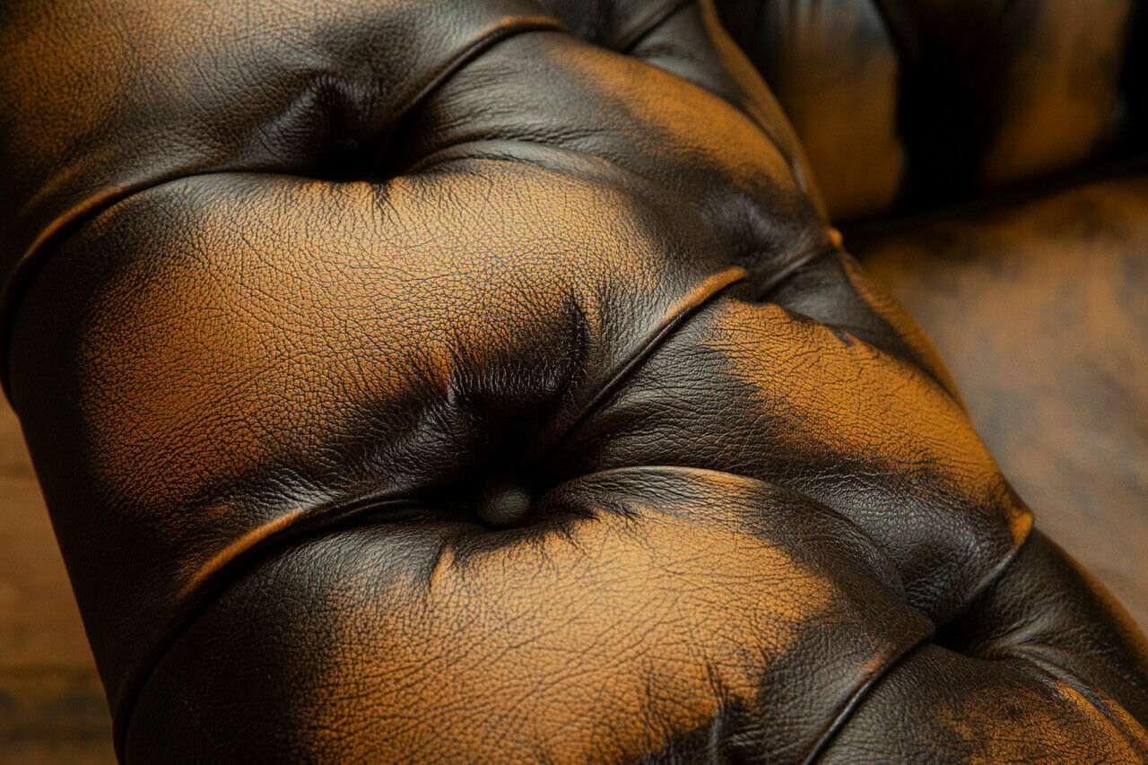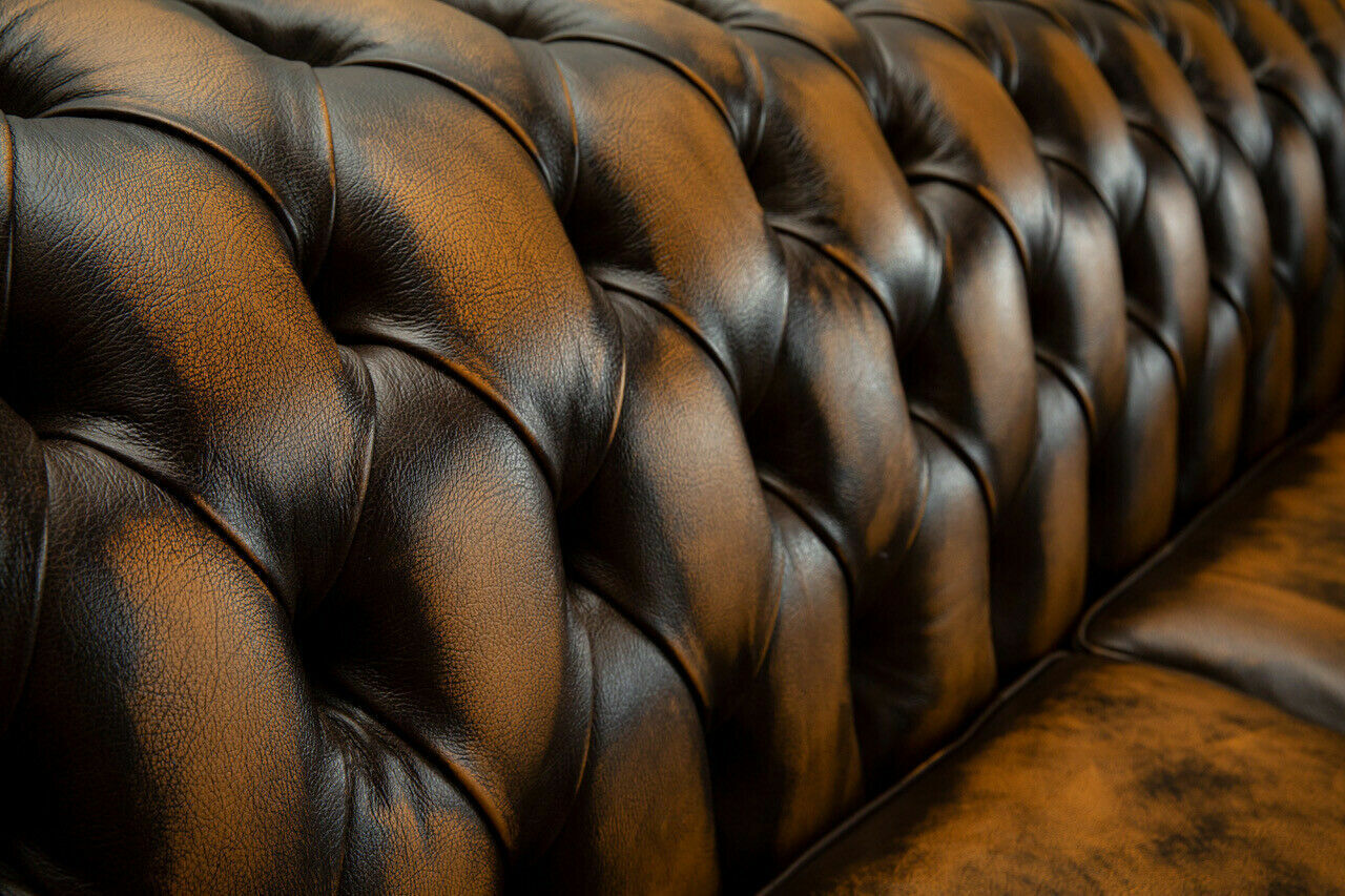 Edler Chesterfield Braunener Dräsitzer Luxus Polster Couchen Designer Sofasen