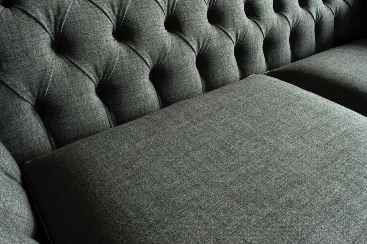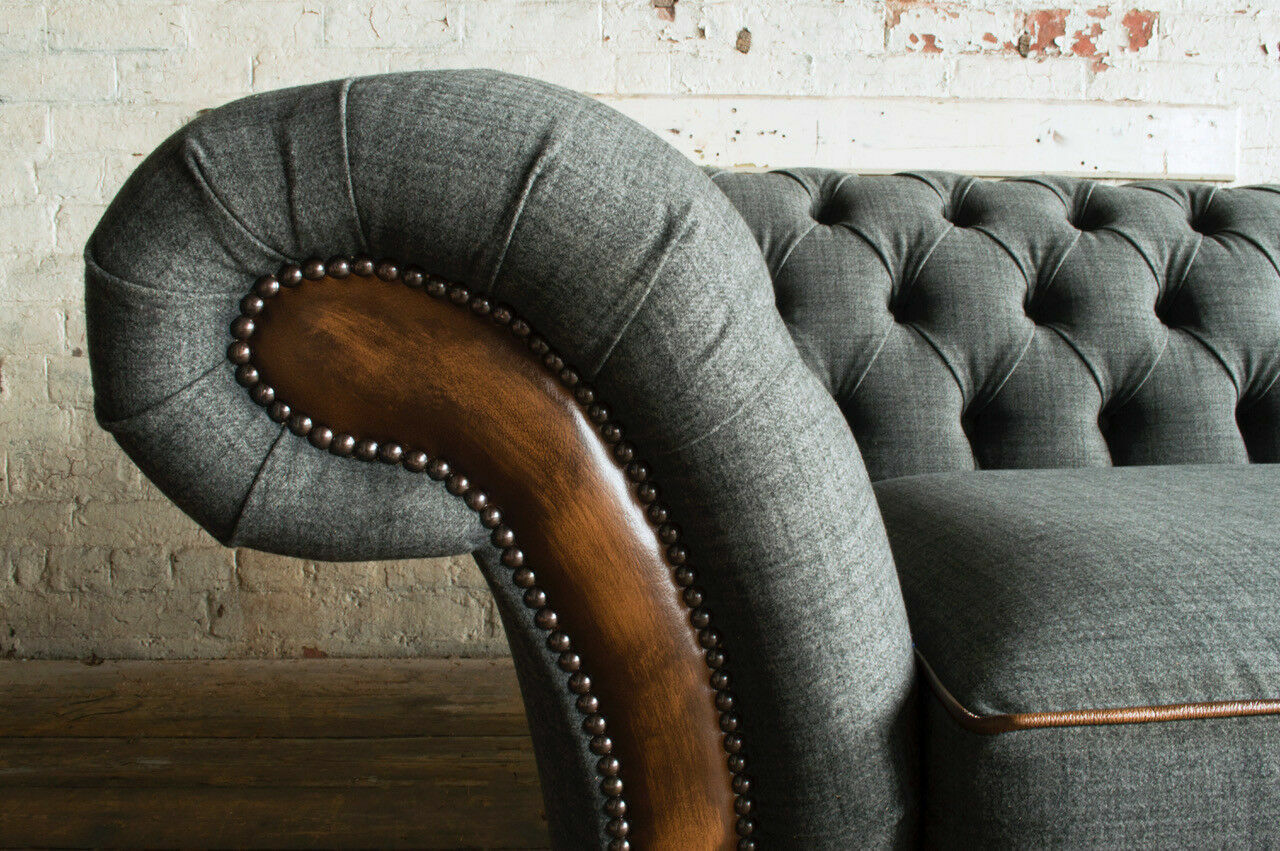 Den 'Edler Chesterfield Dräisëtzer Wunnzëmmer 3-Sëtzer Sofa' ass en exklusive Miwwelstéck dat Äert Wunnzëmmer mat Eleganz an Komfort ergänzt. Mat enger Längt vun ongeféier 225 cm, enger Héicht vun 79 cm an enger Déift vun 98 cm, erlaabt dësen Sofa genuch Platz fir Iech a Är Gäscht. De Sëtz huet eng bequem Héicht vun 42 cm an eng Déift vun 64 cm, wat en optimalen Sëtzkomfort garantéiert. Iech stinn verschidde Gréissten zur Verfügung fir Är Besoinen z'erfëllen, wéi z.B. e **5-Sëtzer, 4-Sëtzer oder souguer e klengen 1,5-Sëtzer**. Dir hutt och d'Méiglechkeet, d'Faarf no Ären individuellen Preferenzen unzepassen, a verschidde Stoffgruppë sinn verfügbar, dorënner **Premium Konschtlieder**, **Premium Echtleder** mat italienesch Rëndsfell, an den innovativen **Magic Home Stoff** dee fleckenabweisend ass.
