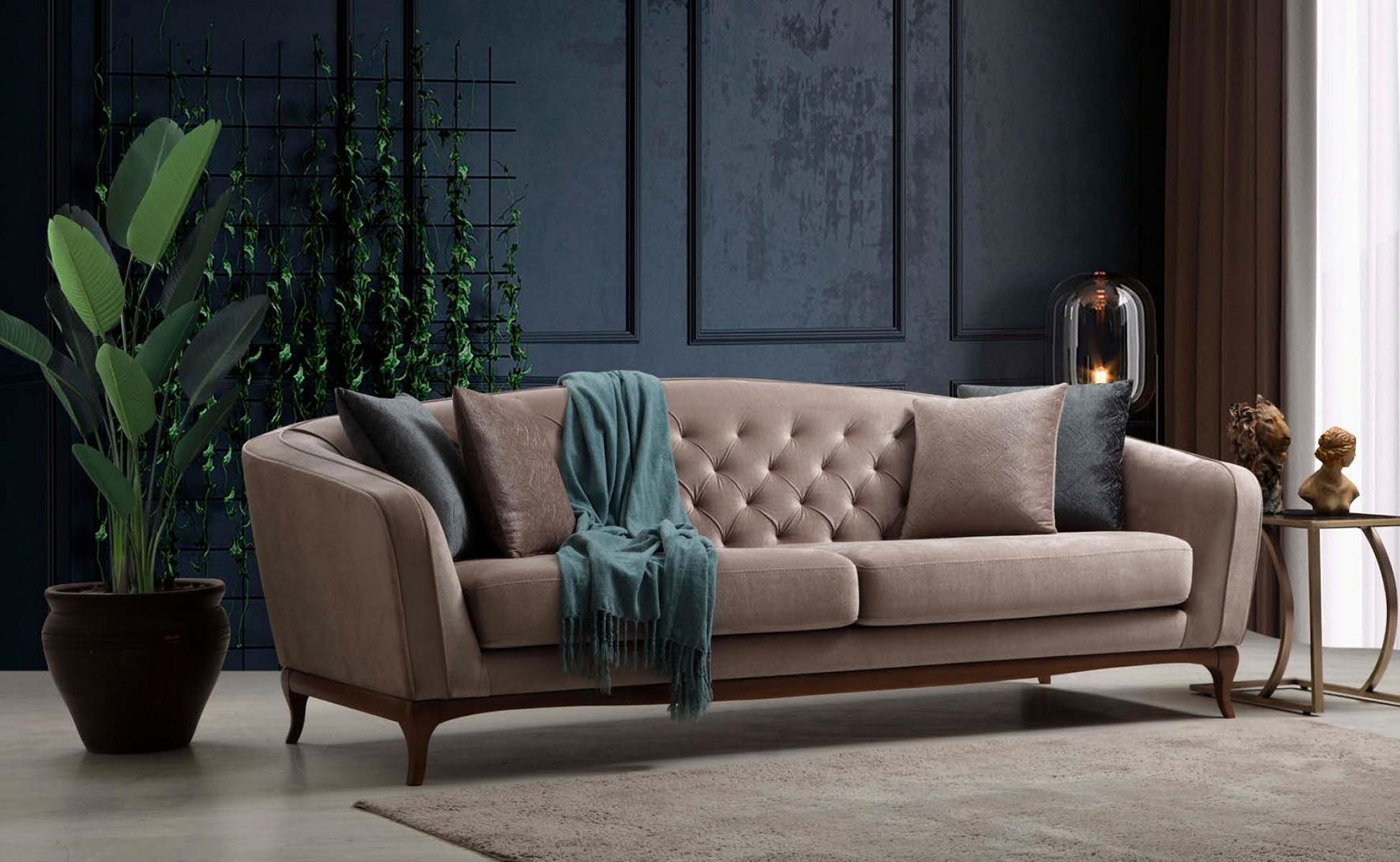 Dreesëtz Sofa 3 Sëtzer Sofas Luxus Gepolstert Couch Stoff Couchen Miwwelen 230cm
