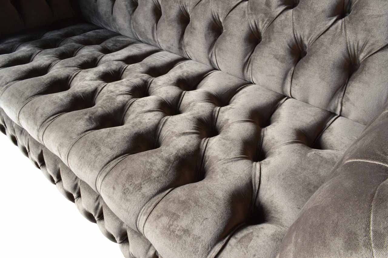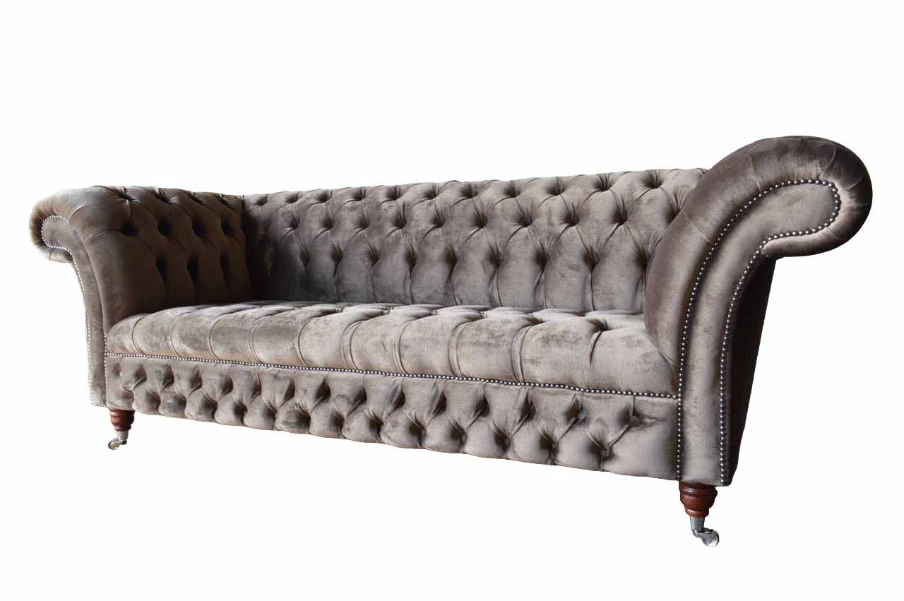 Englesch Chesterfield Sofa Couch Büro Miwwelen Dräisëtzer Samett 230cm Taupe