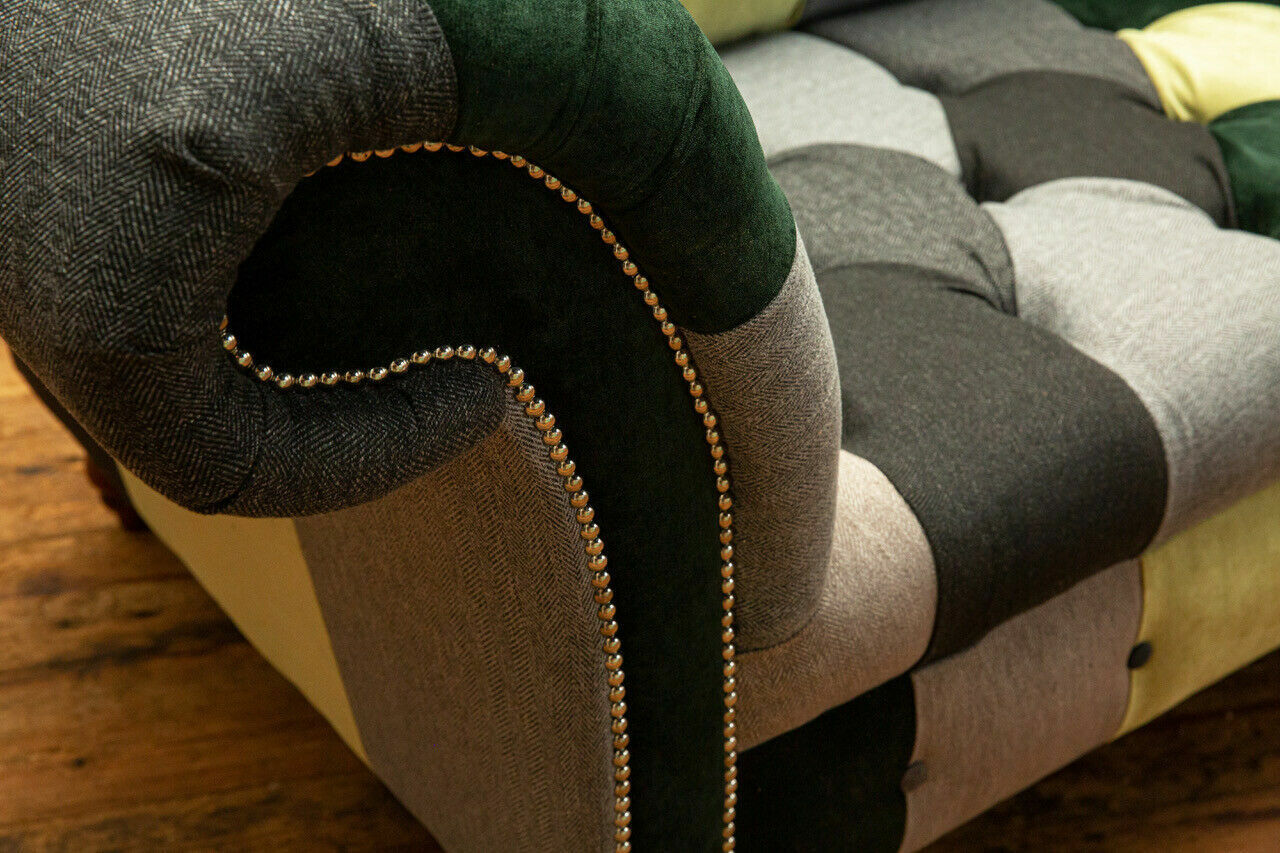 Den Dräisëtzer Canapé Polster Design Sofa 3er Sëtz Sofanen Dräisëtzer Chesterfield Nei ass en elegant a komfortabelen Sofa, deen a jiddwer Wunnraum e stilvollen Akzent setzt. Mat enger Längt vun ongeféier 225 cm, enger Héicht vun 79 cm, an enger Déift vun 98 cm, bidd dëse Sofa genuch Plaz fir dräi Persounen. D'Sëtz Héicht vun 42 cm a Sëtz Déift vun 64 cm garantéieren e vergläichbare Sëtzkomfort. Dir hutt d'Méiglechkeet, aus enger fräier Faarfwal ze wielen, an d'Sofa kann a verschiddenen Textilmaterialien designt ginn. D'Auswiel beinhalt Premium Konschtlieder, stoftfräi Texmate, oder fir en extra Luxus, Premium Echtleder aus italienesch Rëndfleder. Dëse robuste Sofa ass mat enger stabiler Holz-Innenstruktur an engem Federkär fir optimal Ënnerstëtzung ausgesin.»