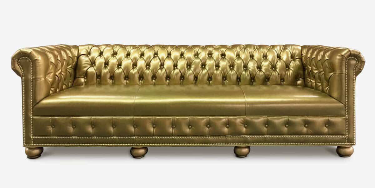 Chesterfield 3-Sëtz Canapé Couch Lieder Garnitur Polstersëtz Stëfter Gold Sëtz Nei
