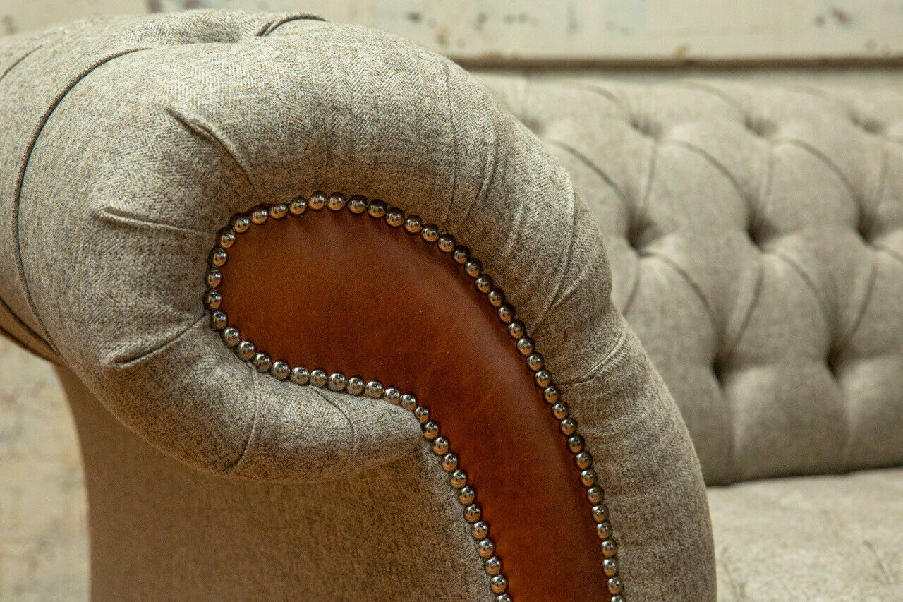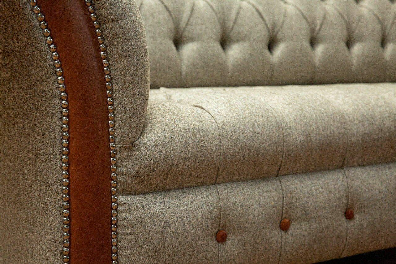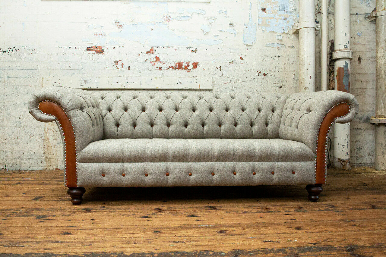 Grau Chesterfield Dräisëtzer Couch Polster Design Sofa Moderner 3er