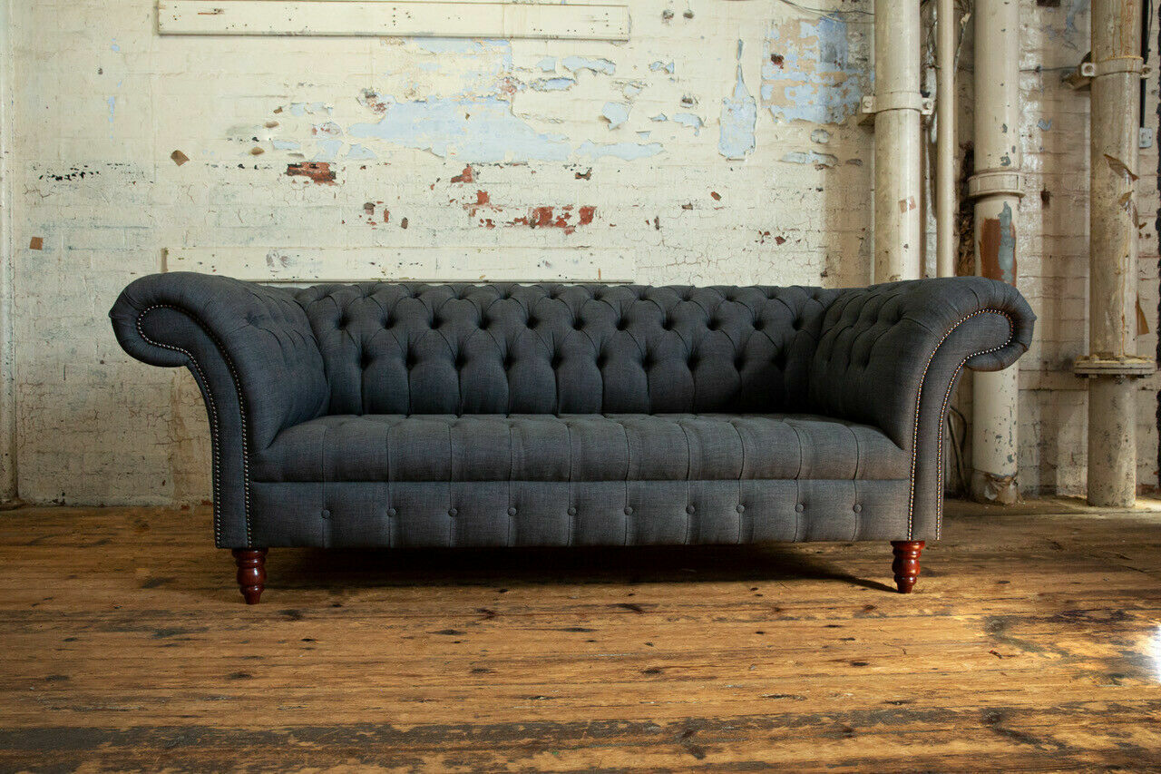 Grou Stoff Sofa Grou Chesterfield Dräisëtzer Luxus Wunnzëmmer Canapé