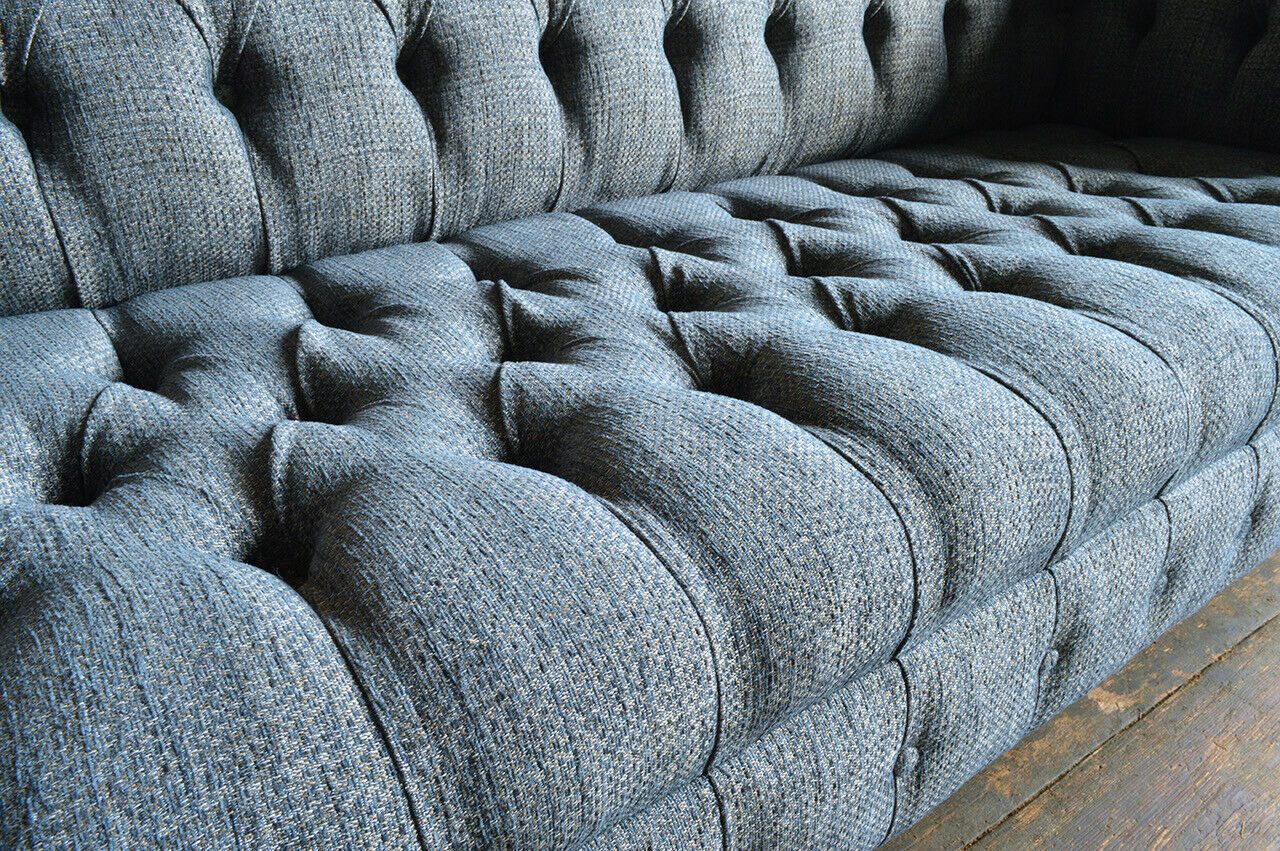 Gro Stoff Chesterfield Dräisëtzer Luxus 3-er Canapé Designer Sofa