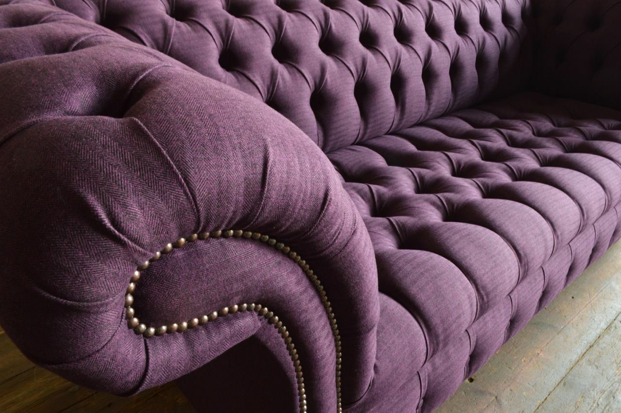 Modernt Lila Chesterfield Drësëtzer Wunnzëmmer 3er Sofa