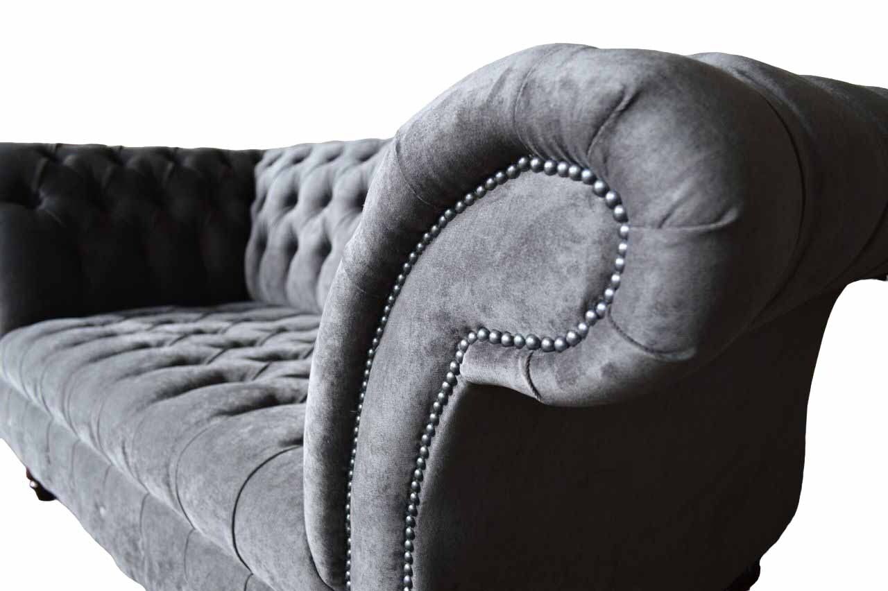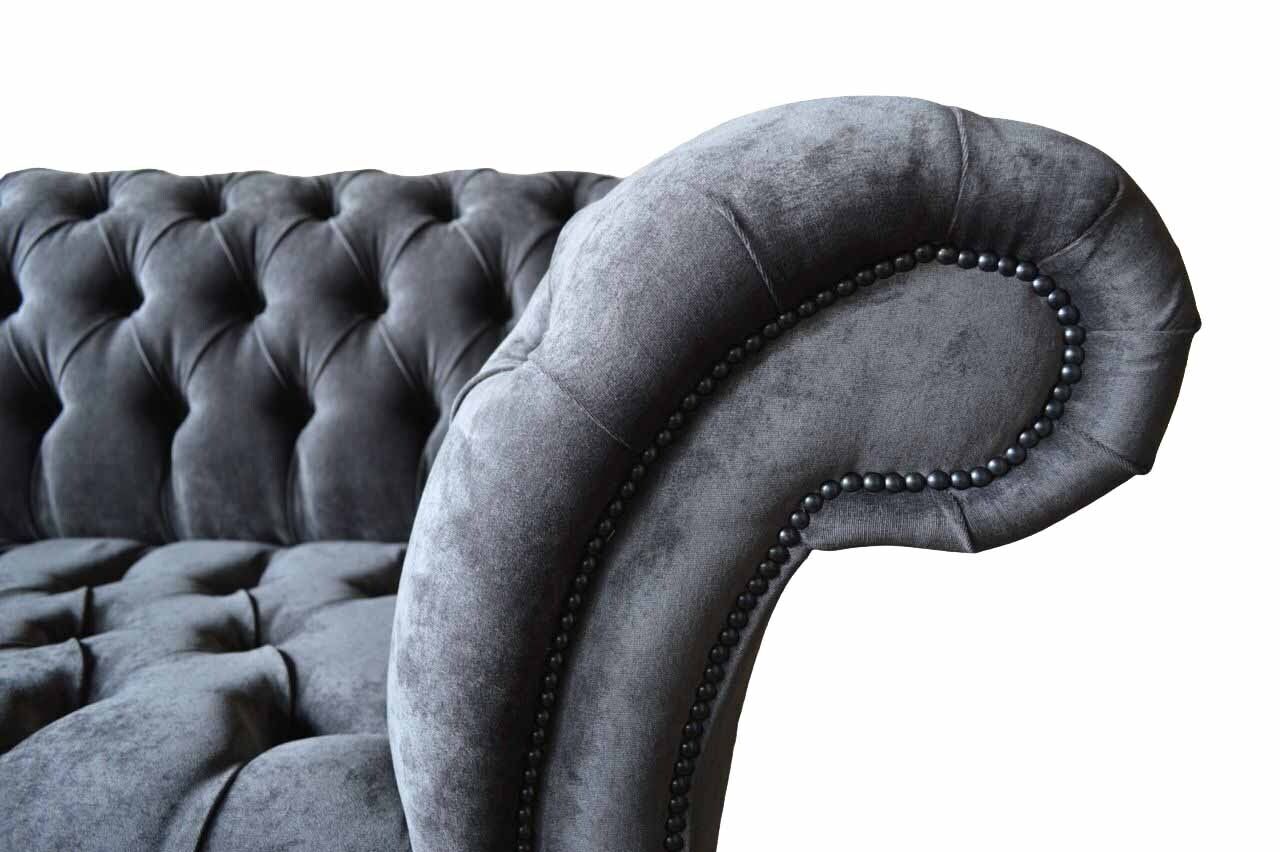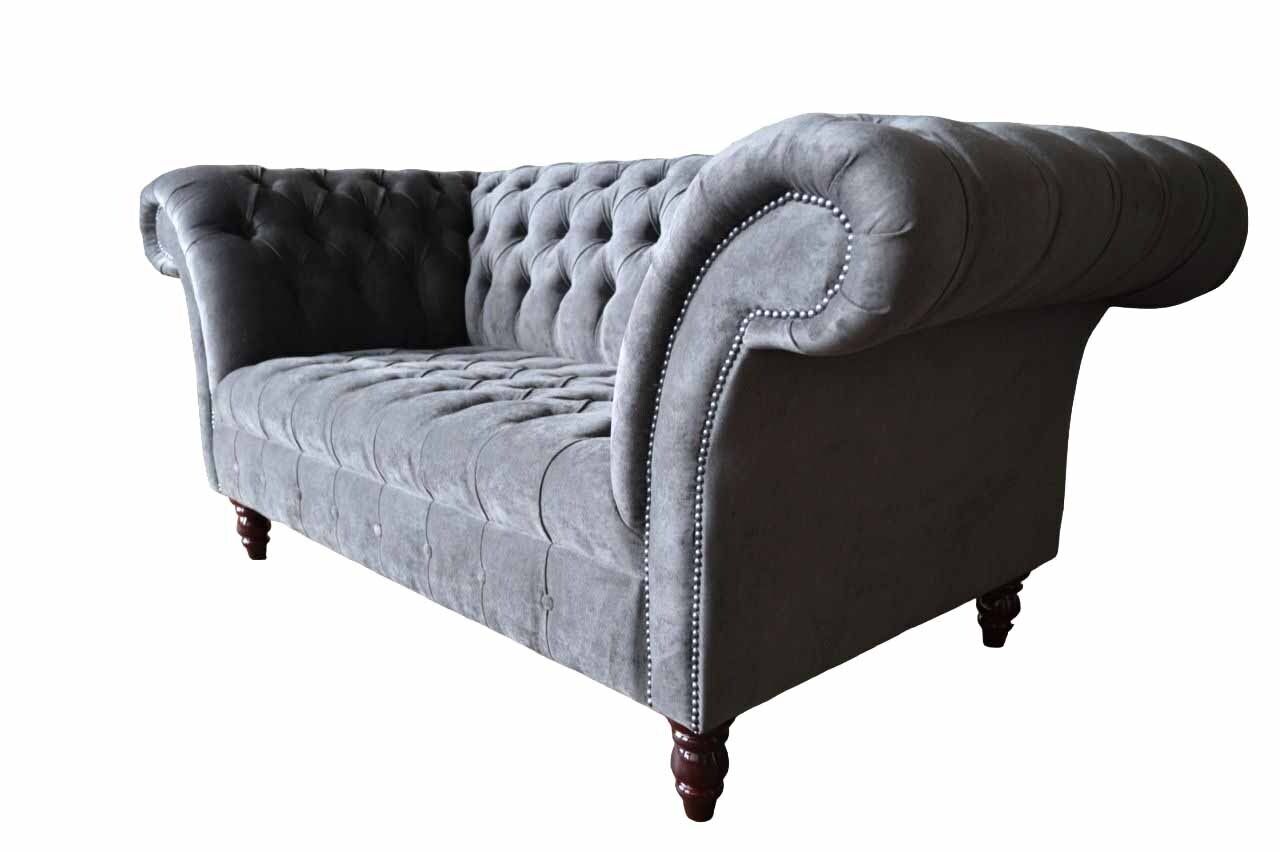 Sofa 2-Sëtzer Couch Design Polster Textil Stoff Gro Chesterfield Nei