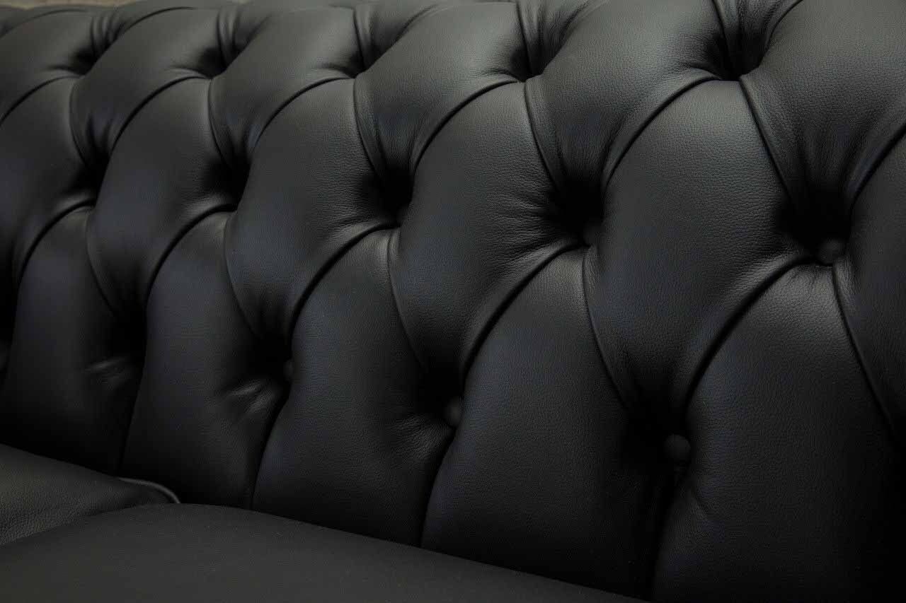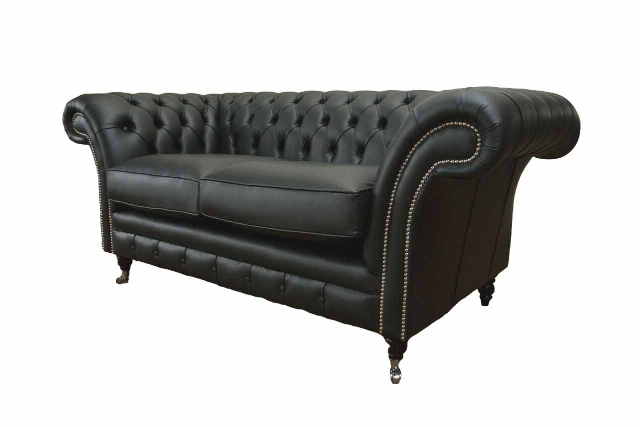 Sofa Luxus Textil Chesterfield Canapéen Sofas Polster 2 Sëtzer Schwaarz Lieder