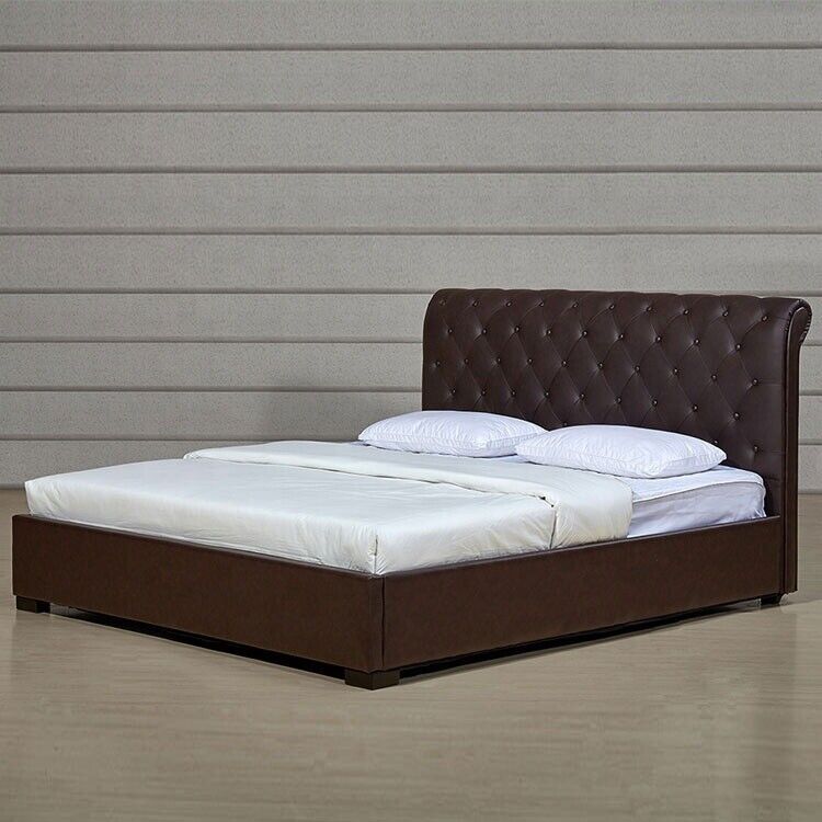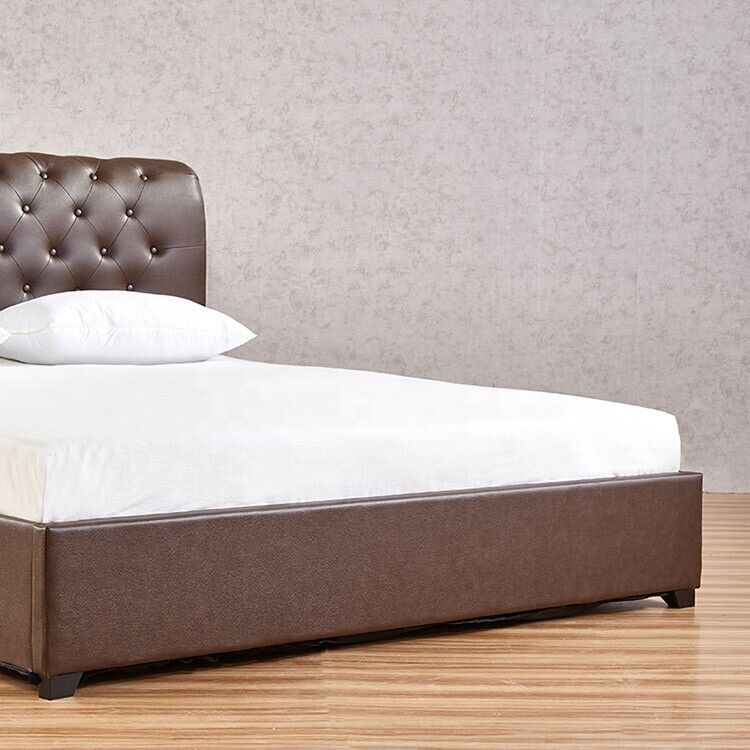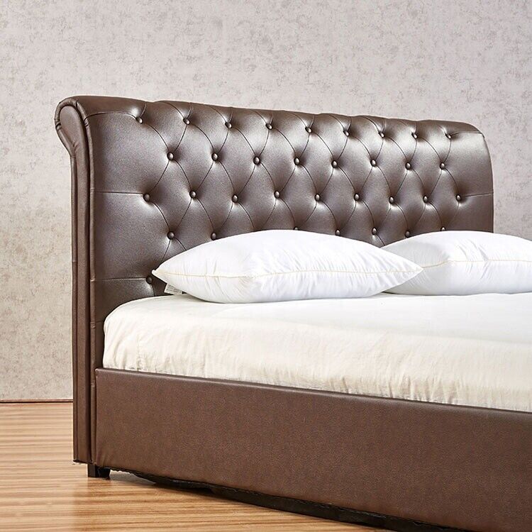 Modern Braun Chesterfield Duebelbett Designer Schlofzëmmer Bett