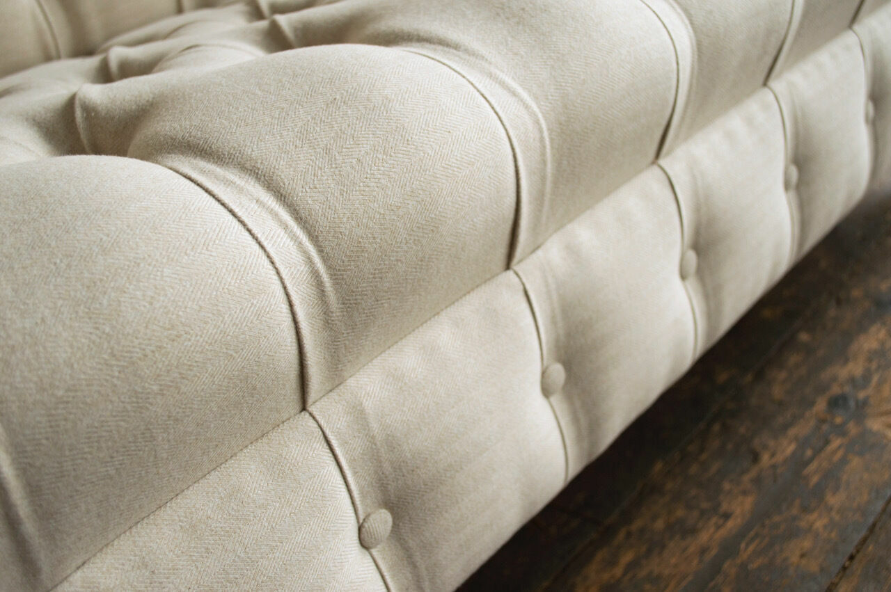 Modern beige Chesterfield 3-Sëtzer Sofa Wunnzëmmer Canapé