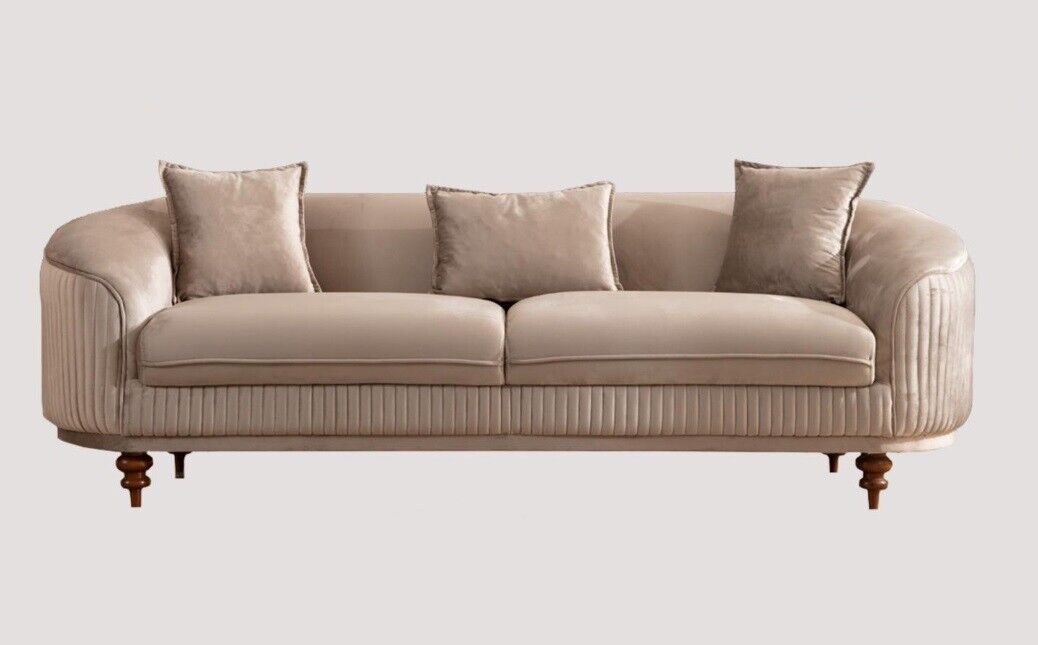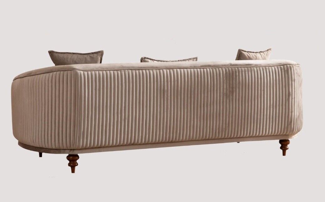 Den **Canapé Couchage Samett Gepolstert Sëtz 321 Sëtz Garnitur Design** ass e luxuriéise Miwwelstéck, dat Komfort an Eleganz op aussergewéinlecher Manéier verbannt. De Set besteet aus engem **3 Sëtzer**, engem **2 Sëtzer**, an engem **1 Sëtzer**, allerdéngs gemaach fir äre Wunnraum mat Stil a Komfort aus ze fëllen. De gepolsterten Sëtz ass mat engem agreabelen Samettstoff bedeckt, wat fir eng zousätzlech mëll a gemittlech Erfahrung suergt. De Miwwel ass op engem robusten Holzframe gebaut, deen Langlebegkeet a Stabilitéit garantéiert. D'Neutralfaarf, wéi um Bild gewisen, erlaabt et ganz einfach an all Zort Dekor anzepassen, sou datt et eng ideal Wiel fir vill Interieuren ass.