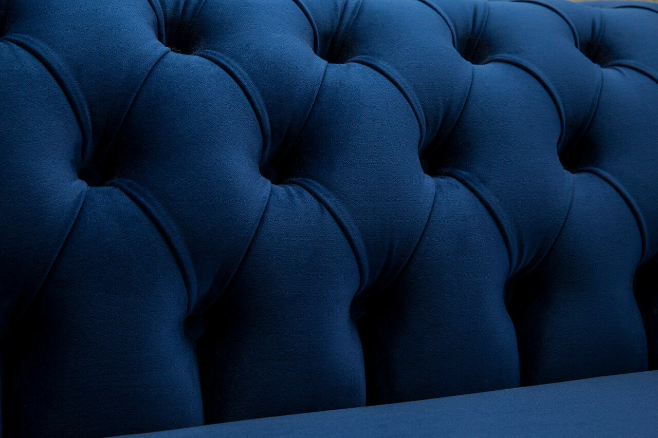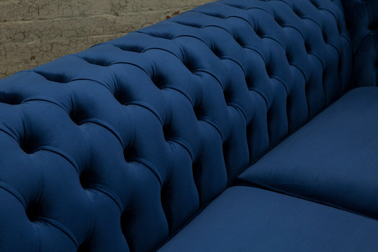 Klassesch Chesterfield Canapé 4 Sëtzer Sofa Canapé Samt Lieder Blo Design Polsterung
