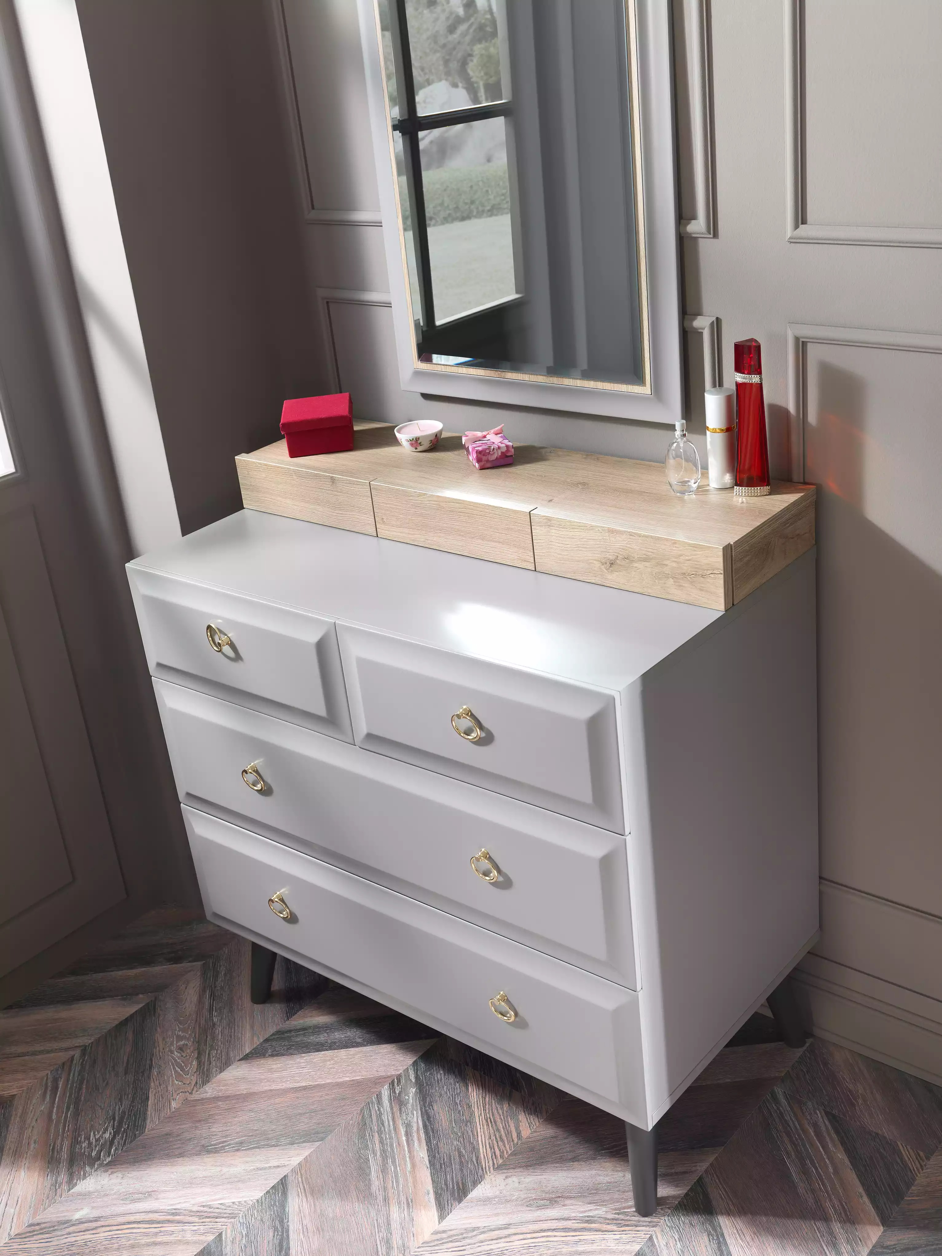 Dës Holzkommode ass net nëmme schéin a funktionell, mä och extrem praktesch. Si bitt genuch Stauplaz fir Kleeder, Spillsaachen an aner Wichtegkeeten déi oft an engem Kannerzëmmer ze fannen sinn. Dank hirem stilvollen Design kann se och einfach an engem Jugendzëmmer benotzt ginn, wou se als en ästhetescht an organisatorescht Element déngt. Ob fir den Alldagsgebrauch oder als Deel vun enger Erneierung vum Zëmmer, dës Kommode ass eng zouverlässeg Léisung fir eng propper an uerdentlech Ëmwelt ze bewahren. Profitéiert vu sengem robuste Bau a senger Eleganz fir eng komfortabel, praktesch an schéin Ariichtung vun Ärem Raum ze garantéieren.