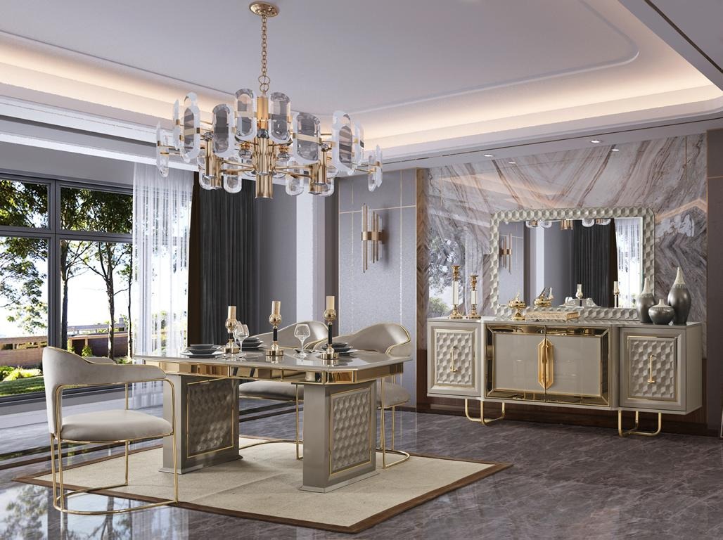 Dës Kommode ass aus héichqualitativem Holz, Glas a Metall hiergestallt, déi eng harmonesch Mëschung aus Zäitloskeet an Moderne ubidden. Dank hirer beandrockender Längt vun circa 212 cm a variabeler Héicht tëscht 89/179 cm, kann dëse Schaf als en dekorativen Mëttelpunkt an Ärer Stuff, am Iesszëmmer oder souguer an engem Buerosberäich benotzt ginn. D'Tiefe vun em 53 cm erlaabt genuch Plaz fir Är Saachen organiséiert an zougänglech ze halen, wärend de Spigel d'Gefill vu Raum an hellegkeet erhéicht. Maacht Är Frënn an d'Famill beandrockt mat dësem luxuriéise Miwwelstéck, dat Stil a Funktionalitéit kombinéiert.