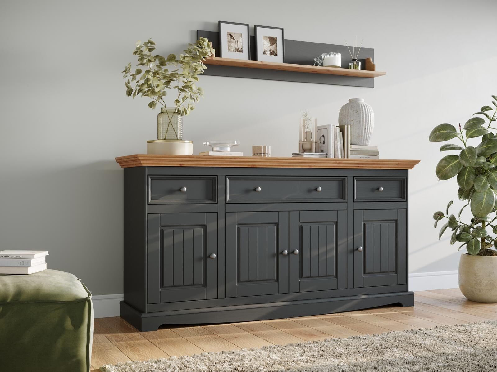 Dank hirem raimege Banneschtraum aus echtem Holz, erméiglecht dës Kommode Iech, Är Wäertsaachen suergfälteg an organiséiere ze verstaue. Ob wéi et als Buffetschaf an der Kichen, als Anrichte am Iesszëmmer oder souguer als Kleederschaf am Schlofzëmmer benotzt gëtt, dëst verstännegt Miwwelstéck passt perfekt an all Interieurstil. Mat senger funktioneller a stilvoller Design ass déi 'Miwwelen Massivholz Schief Anrichte Kommoden' en onëmgänglechen Deel an ärer Einricheung, déi Komfort a Stauplaz mat Eleganz verbënnt.