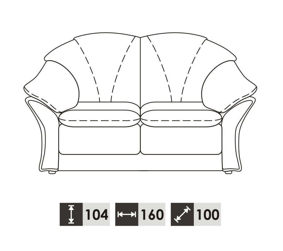 Dëse stilvolle Zweisitzer ass entworf fir a klengen a grousse Raim optimal Plaz ze fannen, mat enger Längt vun ongeféier 160 cm, enger Héicht vun 104 cm, an enger Déift vun 100 cm. An der Konstruktioun setzt dës Sofa op en Innenkader aus echtem Holz, wat Robustitéit a Stabilitéit fir den Alldag séchert. Duerch déi héich Qualitéit vun den Materialien wéi italienesch Rëndsfeller an enger angenehmer Ënnerfieder mat Federkär, ass Komfort garantéiert. Perfekt fir gemütlech Owender mat engem Léifsten oder einfach relax Zäiten no engem laangen Dag.