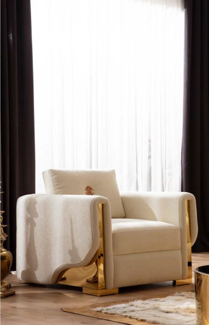 Design Eengesëtz Fotell Textil Wunnzëmmer Lounge Metall Luxus Design Canapé Miwwelen